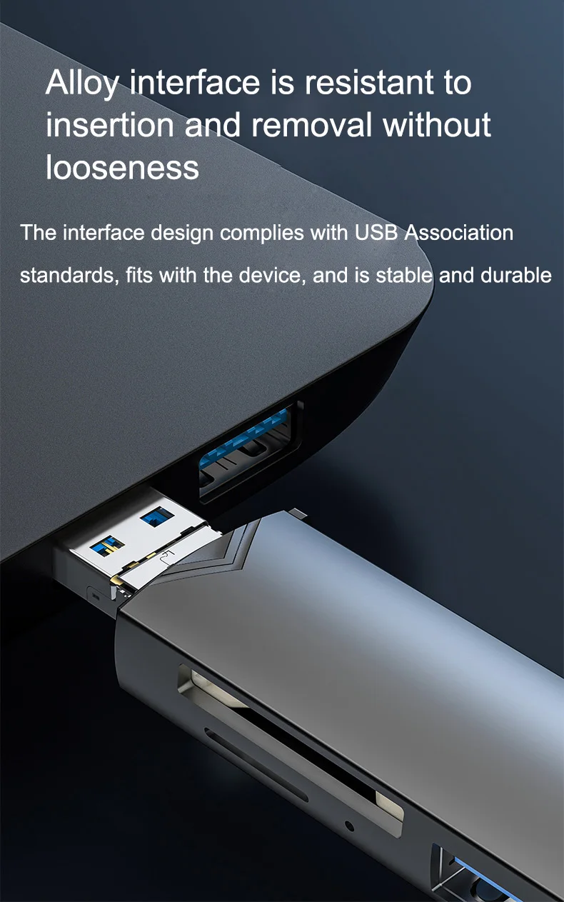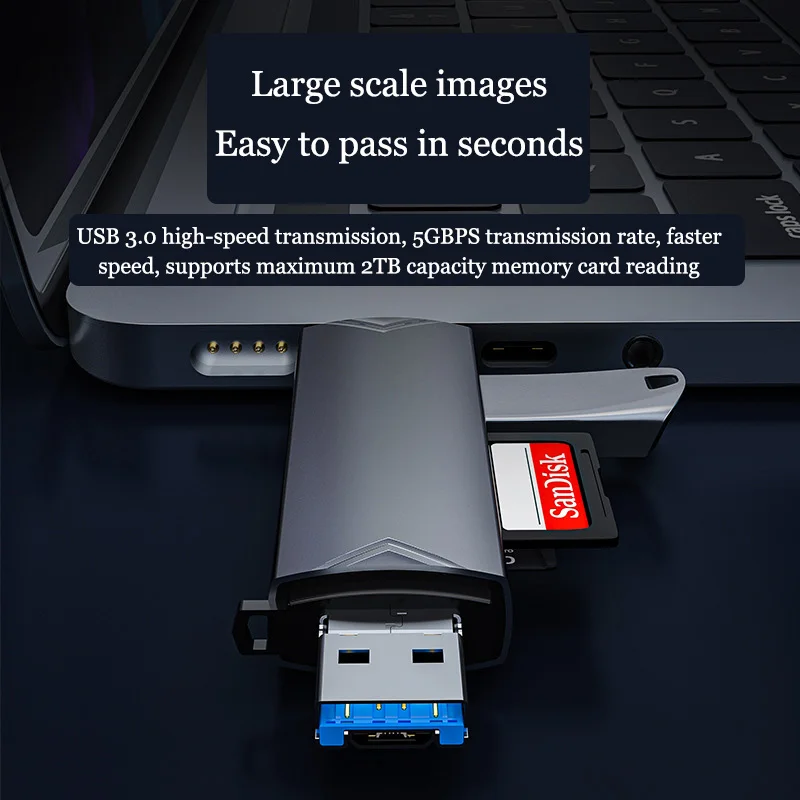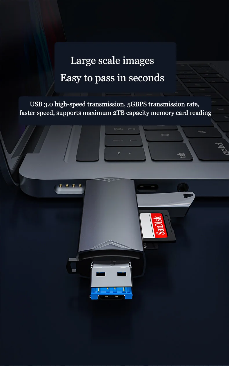 USB 3.0 high-speed transmission, 5GBPS transmission rate, faster speed, supports maximum 2TB capacity memory card reading