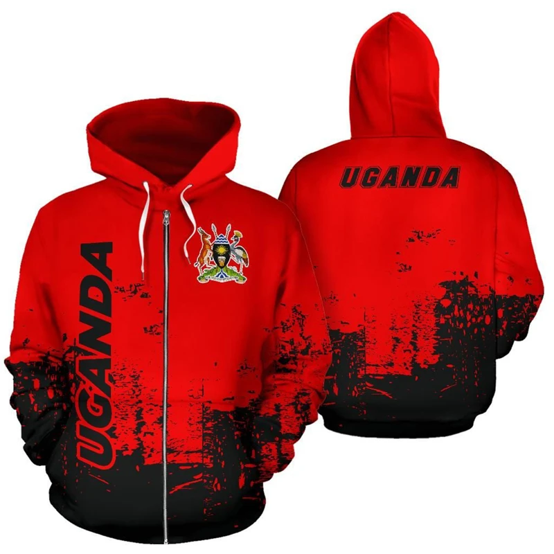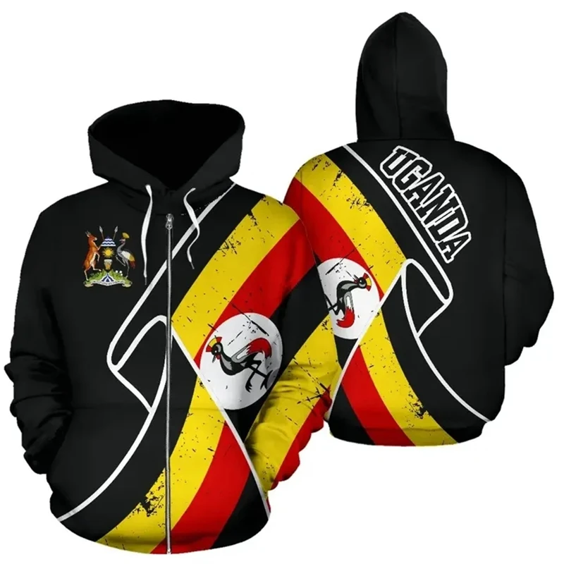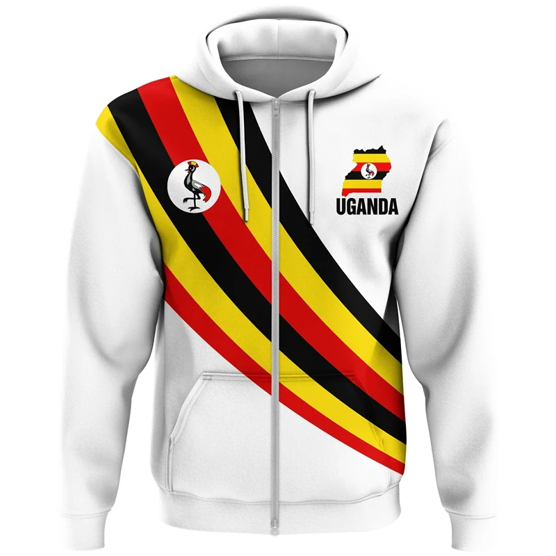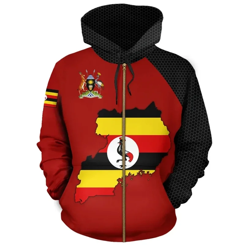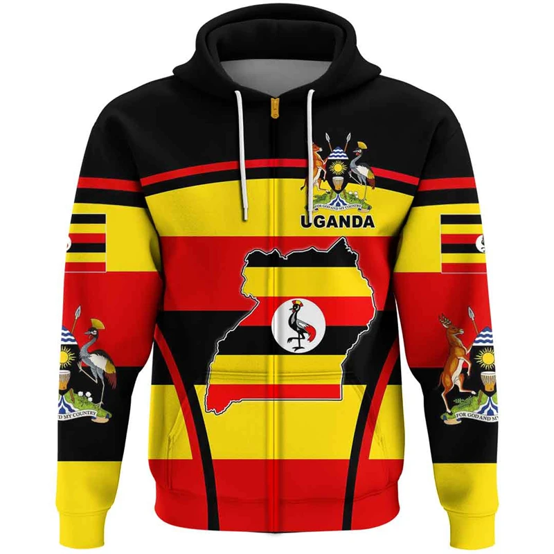 Uganda Flag Map Graphic Sweatshirts Africa Country Zip Up Hoodies For Men Clothes Casual Boy Hoody National Emblem Streetwear