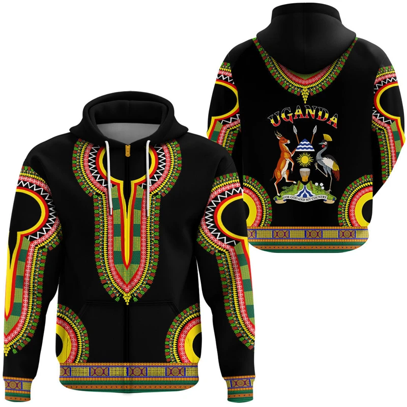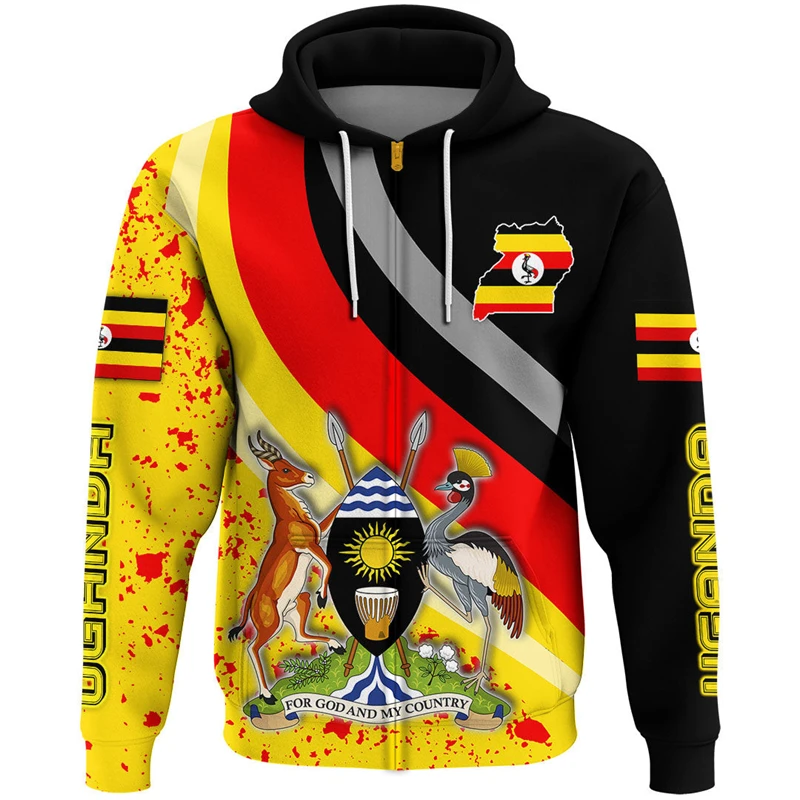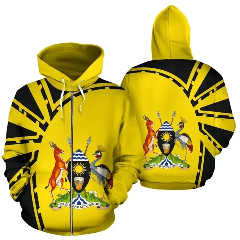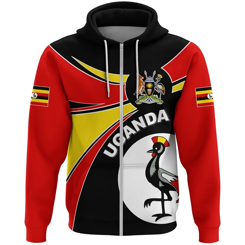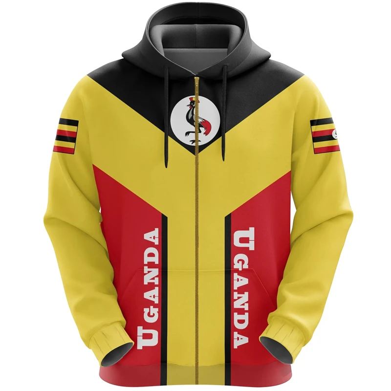 Uganda Flag Map Graphic Sweatshirts Africa Country Zip Up Hoodies For Men Clothes Casual Boy Hoody National Emblem Streetwear