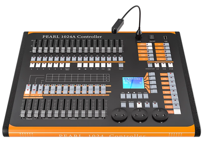 512/1990 standard, maximum 1024 control channels, photoelectric isolation signal output. L control 96 largest amount of dimming or 96 road,use pearl lamp base. L built-in graphics trajectory generator, there are 135 built-in graphics, convenient for user to graphics trajectory control of amount, picturesque, spiral, rainbow, chasing, and other effects. Graphic parameters (e.g. amplitude, speed, interval, wave, direction) can beset independently. L l console has the function of writing lamp library. L60 repeat scenario, a multi-step scenario is used to store and single-stepscenario. A multi-step scenario can store up to 600 steps. L with backlit LCD display, l shutdown data maintain in both Chinese and English. L U diskbackups and upgrades. L work professional gooseneck lamp, suitable forindoor and outdoor performances.