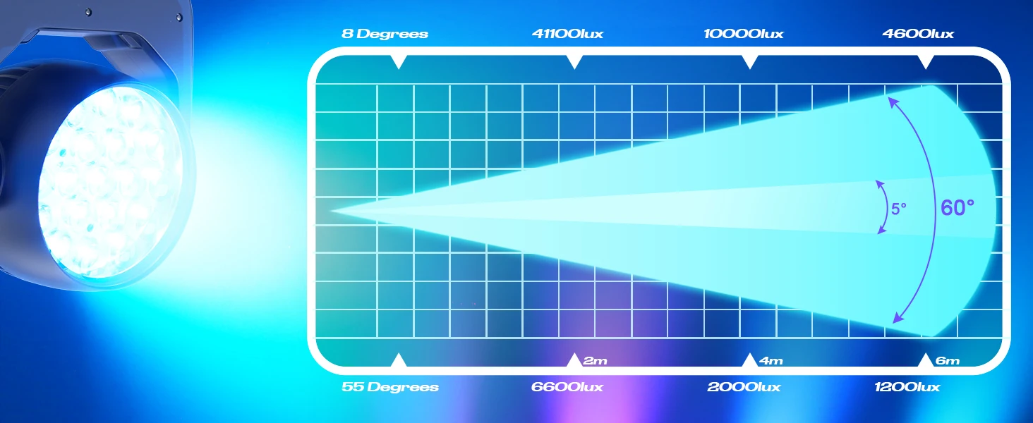 4. Multiple working modes: The luminaire supports multiple working modes, such as automatic mode, voice-activated mode, DMX control mode, etc. Users can choose the right mode according to their needs to realize different lighting effects.