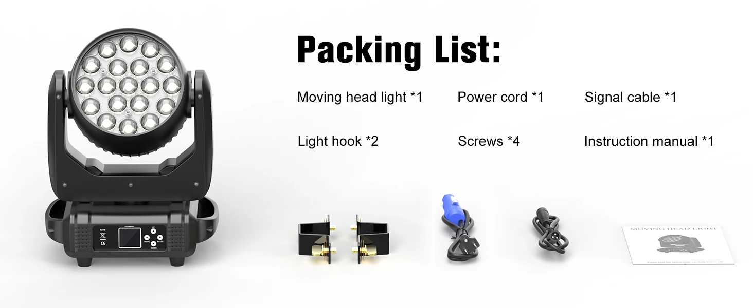7. Multiple installation methods: the focusing coloring moving head is designed to be flexible and can be installed on the boom, bracket or hook. Suitable for different venues and requirements, convenient for users to install and carry as needed.
