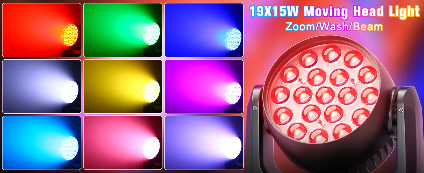 5. High Brightness Lighting: The focusing coloring moving head adopts high brightness light source to provide strong and bright lighting effect, which is suitable for stage performances, concerts, speeches and other places that need high brightness lighting.