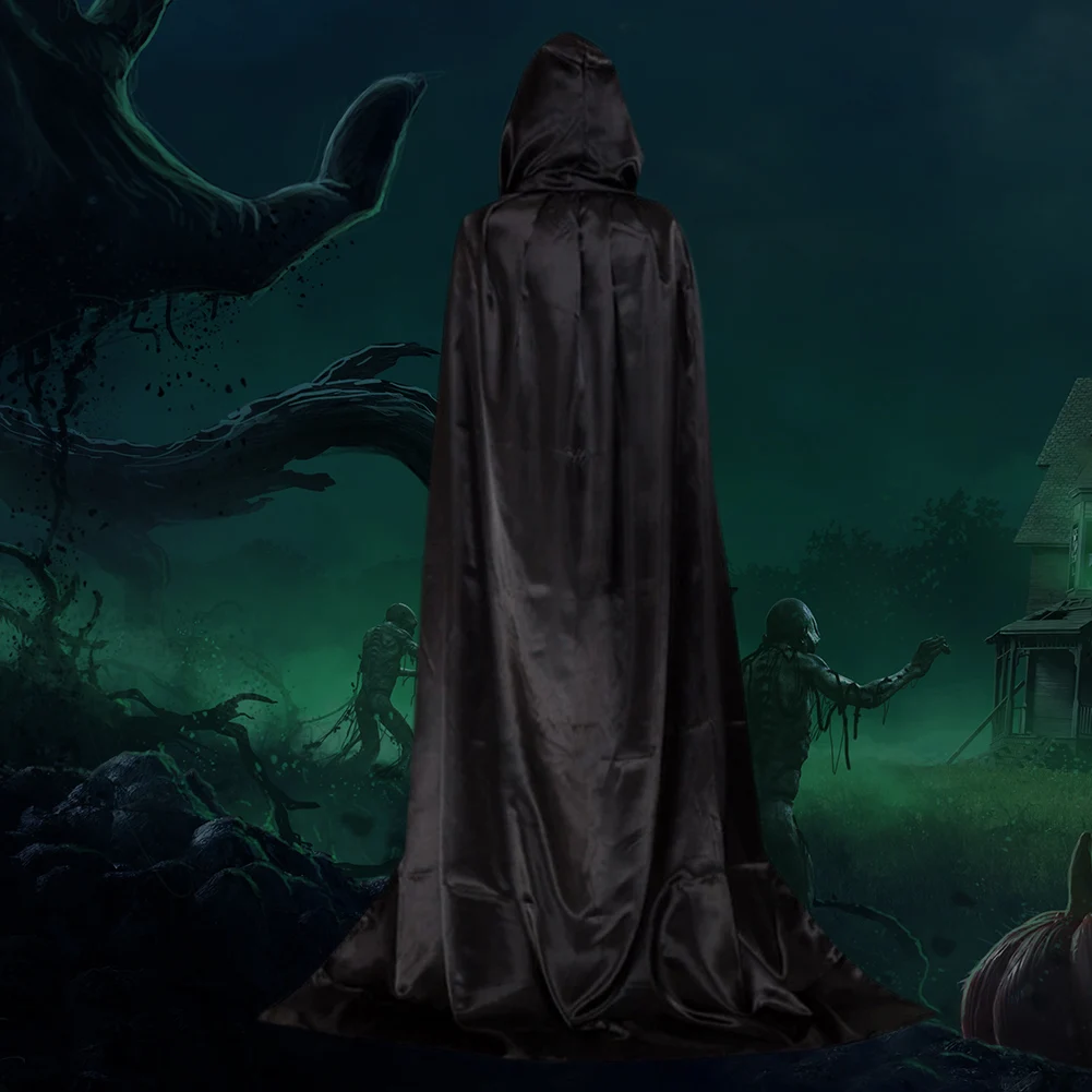 Feature: 1. Size: Available in sizes, suitable for adults and kids 2. Meet the needs: A cloak that can meet the needs of all your character accessories 3. Ideal for: Ideal for vampire, witch, witch cosplay, 4. Perfect Occasion: Perfect for halloween parties, fancy dress parties, cosplay parties, cosplay, costume cosplay parties. 5. Design: made of cloth, which is durable,hooded vampire death cape.