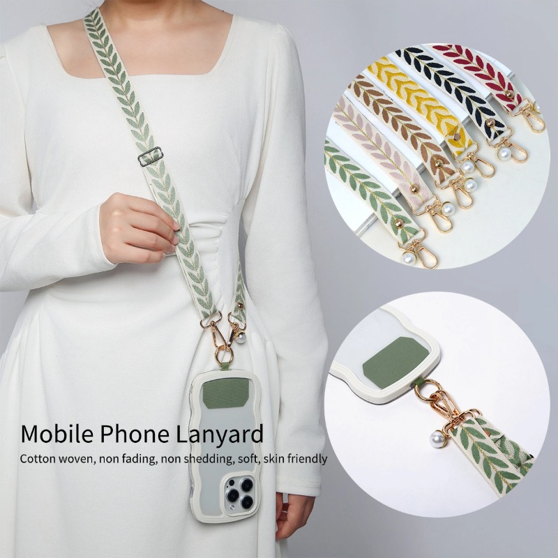 Universal Adjustable Mobile Phone Lanyard for Women Crossbody Single Shoulder Neck Strap Pearl Pendant Hanging Anti Loss Rope