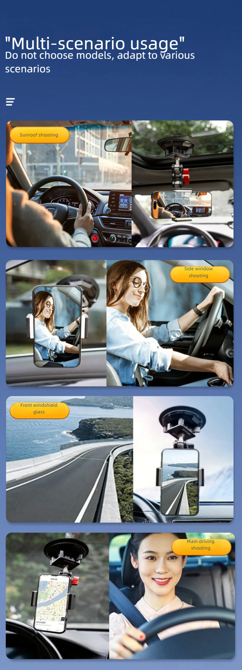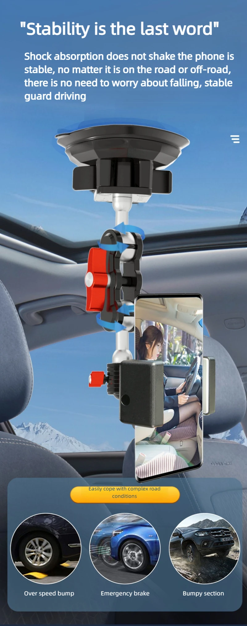 Universal Phone Clamp Holder in Car Ball Head Bracket Suction Cup Mount 360 Rotate Stand for iPhone Huawei Samsung Xiaomi Clip