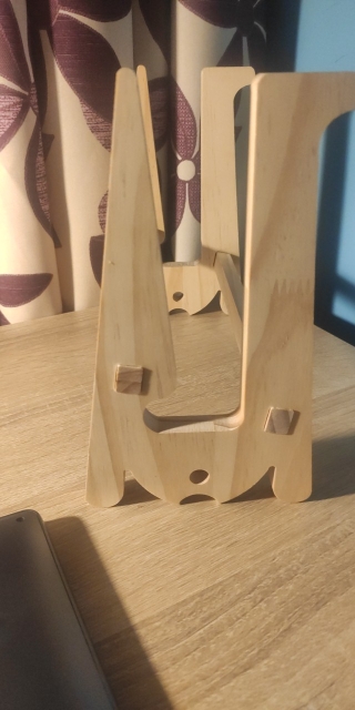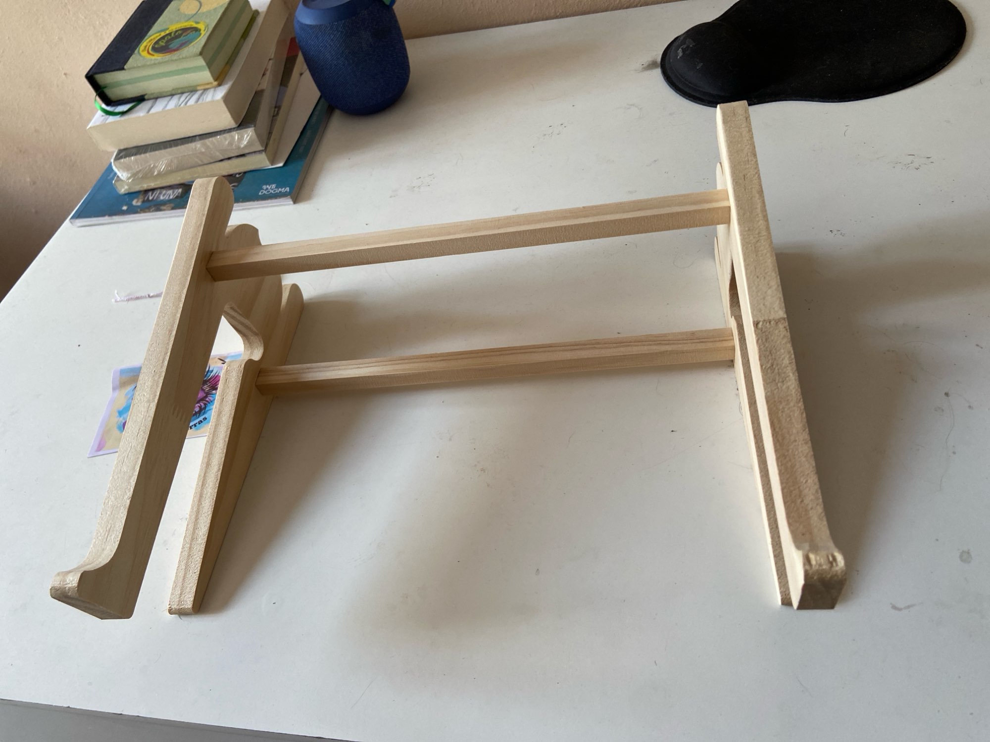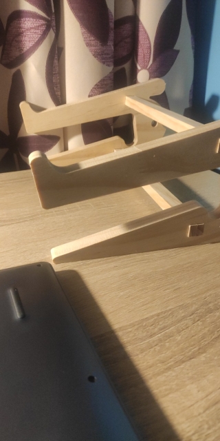 It is exactly as it appears in the photos. It comes protected in cardboard, and brings a small piece of sandpaper, which if necessary, helps you adjust the pieces (I don't need it). You can adjust the width, but with the sticks set to their maximum width, you can put on top a perfect 13 "fitted computer. Does not move, without slack. Fits well both on the table and with the computer on top. Happy with the purchase.