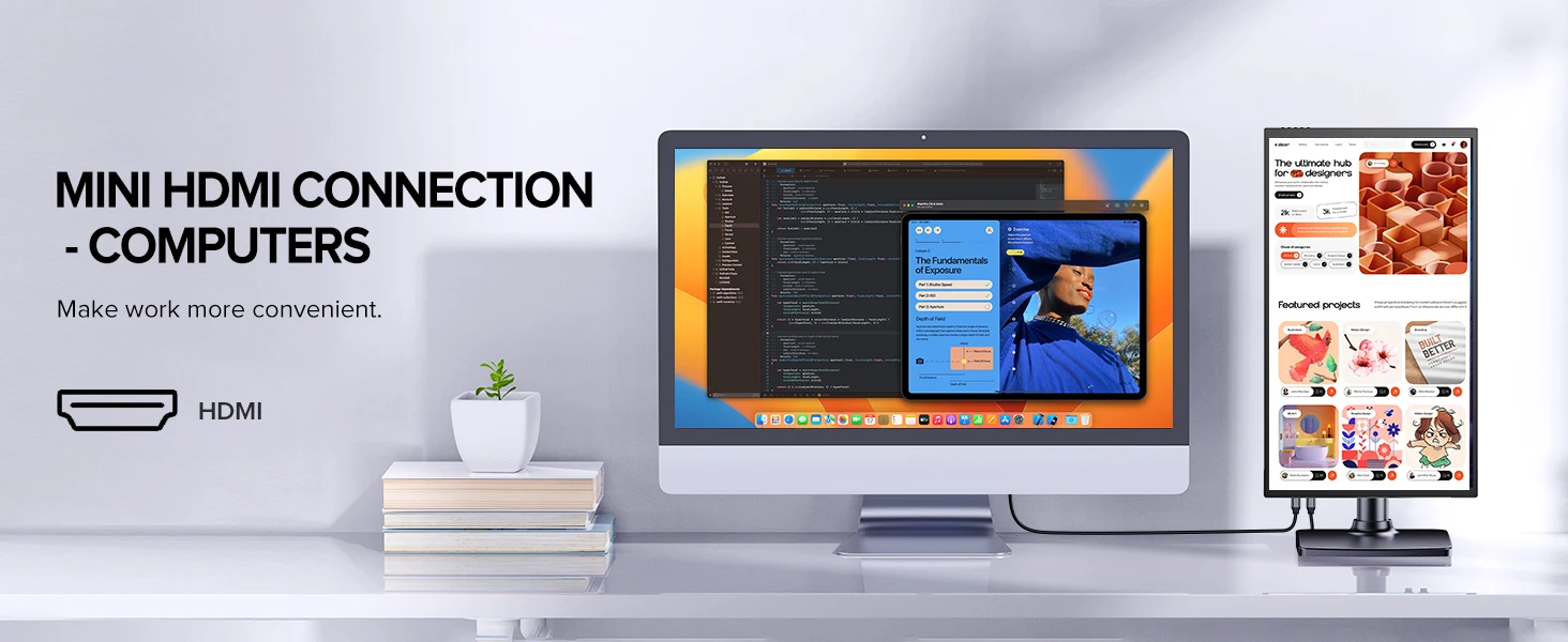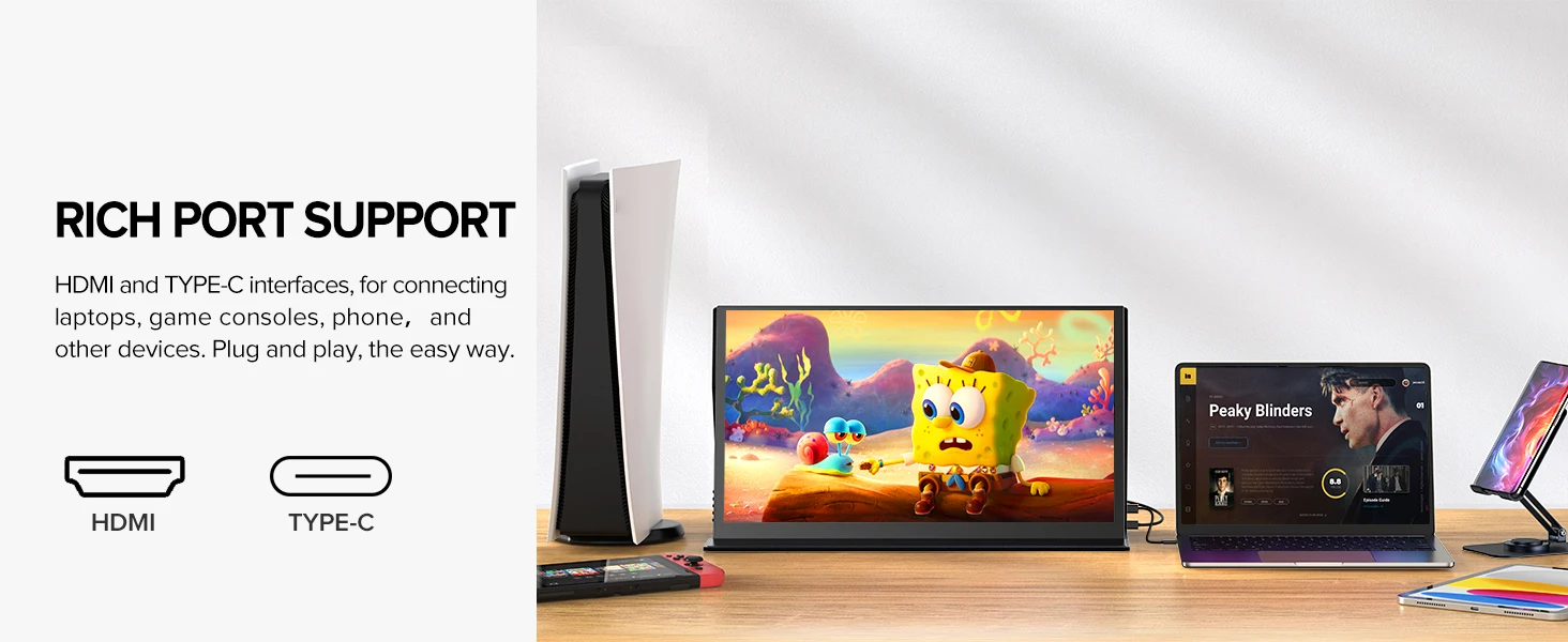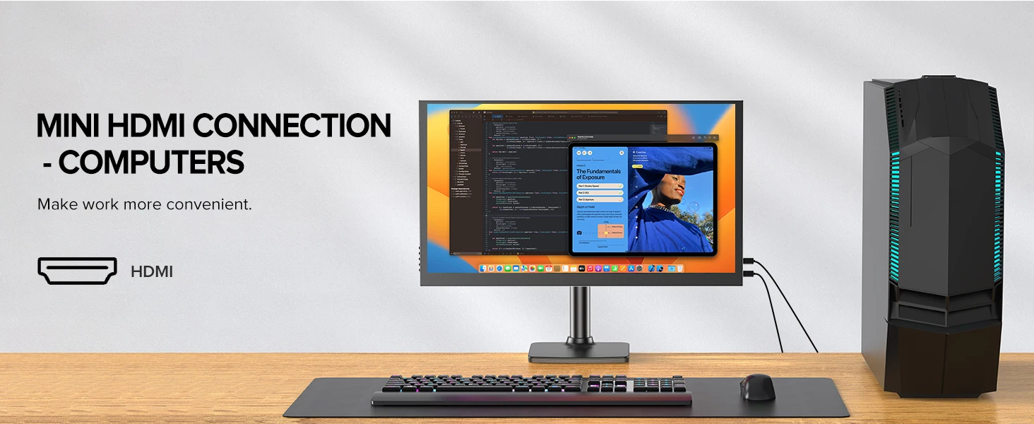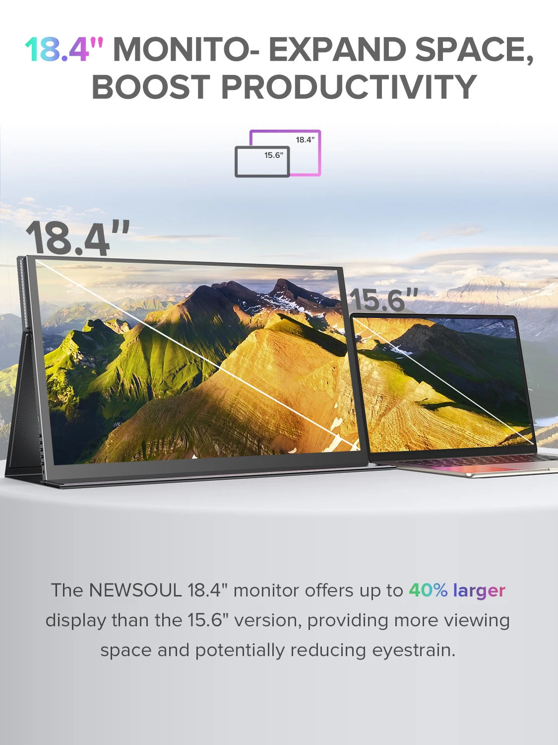 [Two Installation Methods] The 4K 18 inch large gaming monitor has a built-in adjustable stand that can support the monitor on any smooth surface. The back is designed with 4 VESA holes (75*75mm@M4*4mm), which can be installed on a bracket or wall to better fix it next to the computer and use it as a second screen.