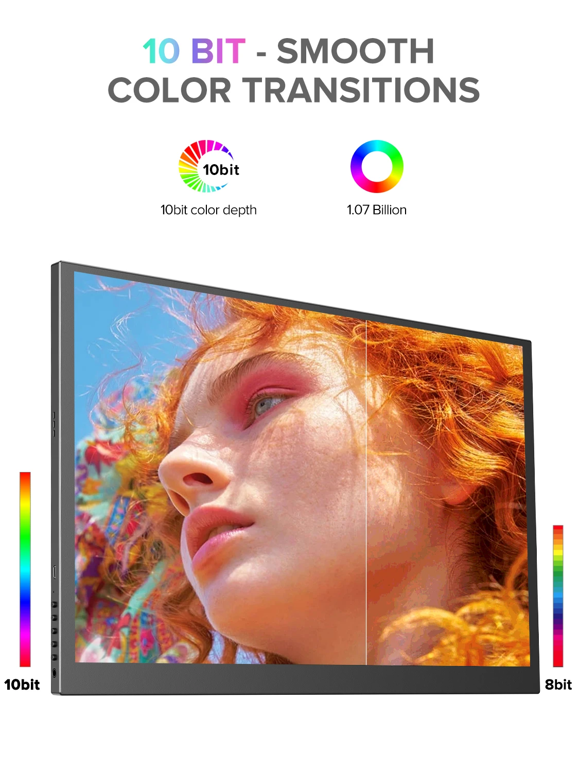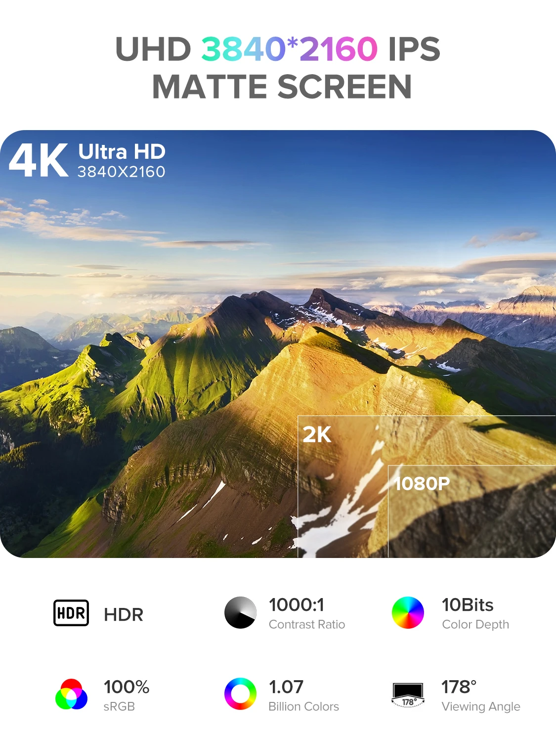 [Enjoy A Billion Colors with Incredible Depth] Explore and immerse yourself in every detail. With 4x the pixels of Full HD, every detail is viewed in enhanced depth, while more screen real estate provides space to view multiple tools, applications, and programs during the day – creating a 4K gaming content viewing experience night and day. With 100% sRGB color gamut, 4K 18 inch large gaming monitor can display more colors, and there is no pressure even in design creation.