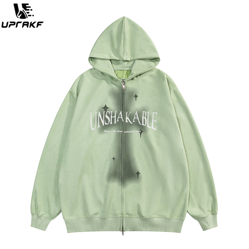 UPRAKF Zip Up Letter Print Hoodie Loose Streetwear Long Sleeve Pullover Autumn High Quality Fashion Casual Simple Design