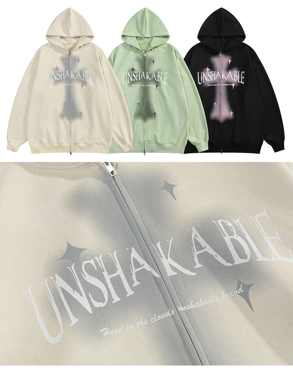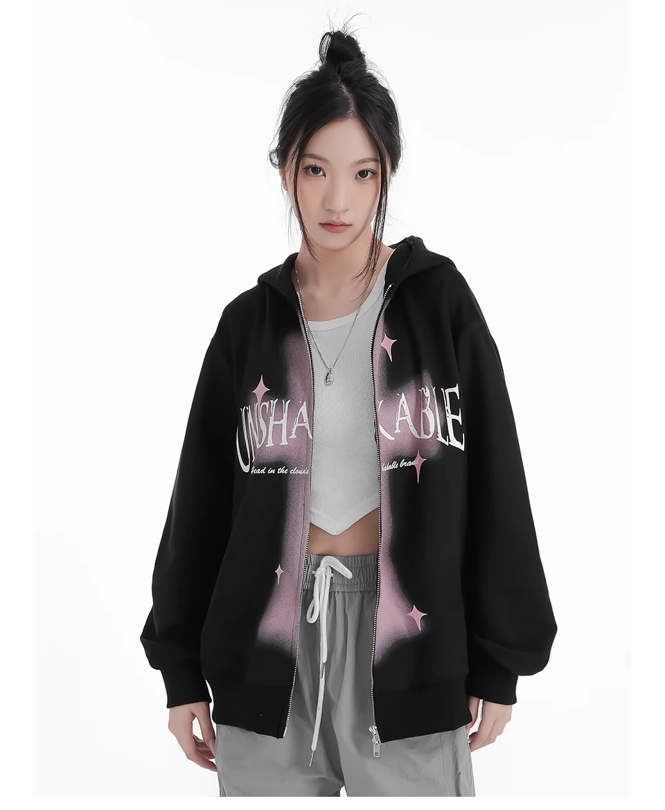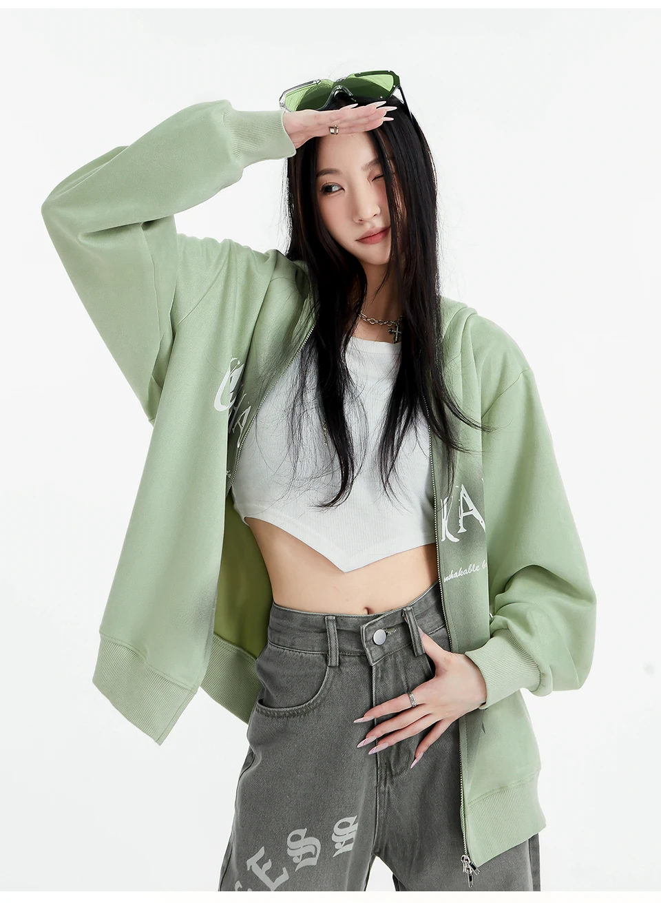 UPRAKF Zip Up Letter Print Hoodie Loose Streetwear Long Sleeve Pullover Autumn High Quality Fashion Casual Simple Design
