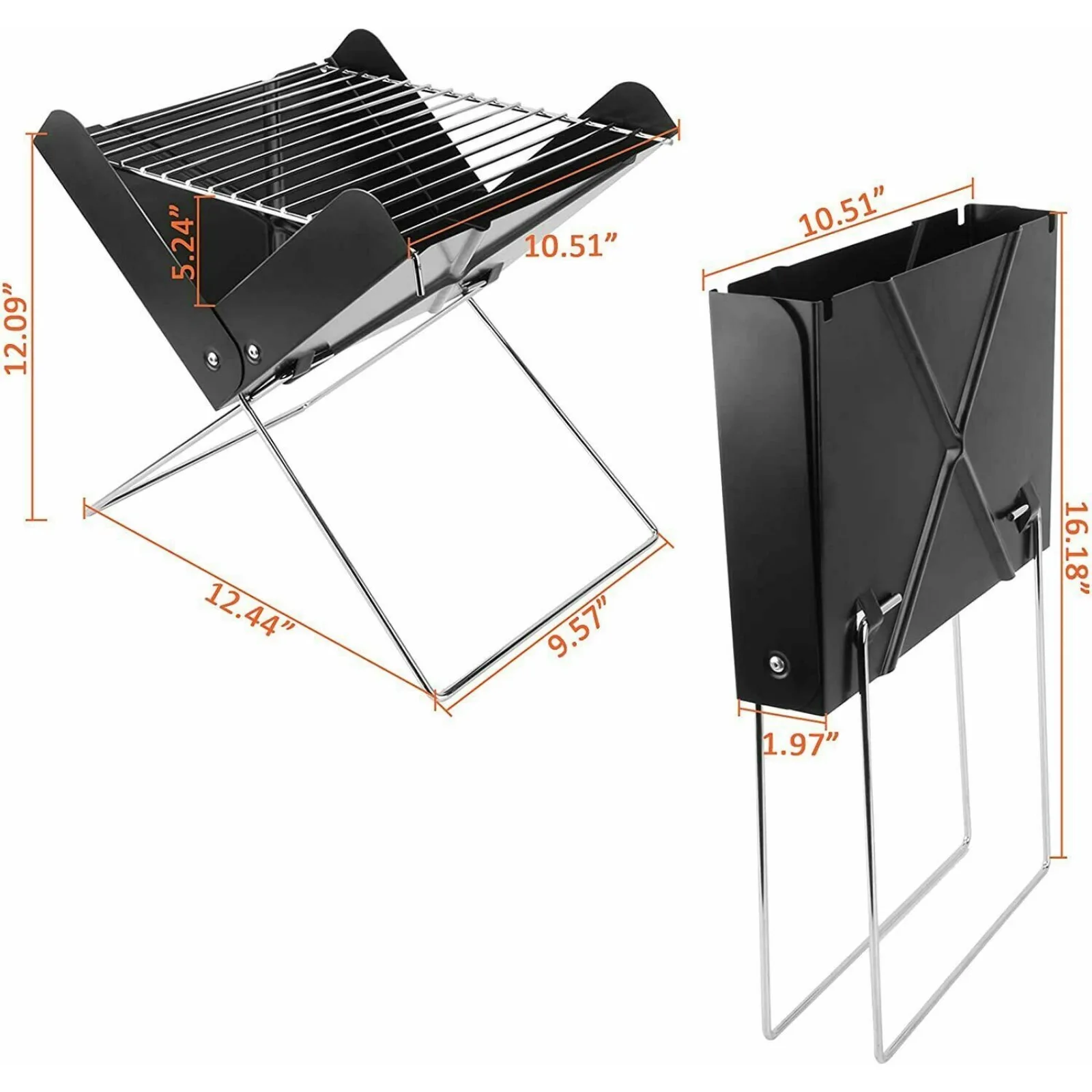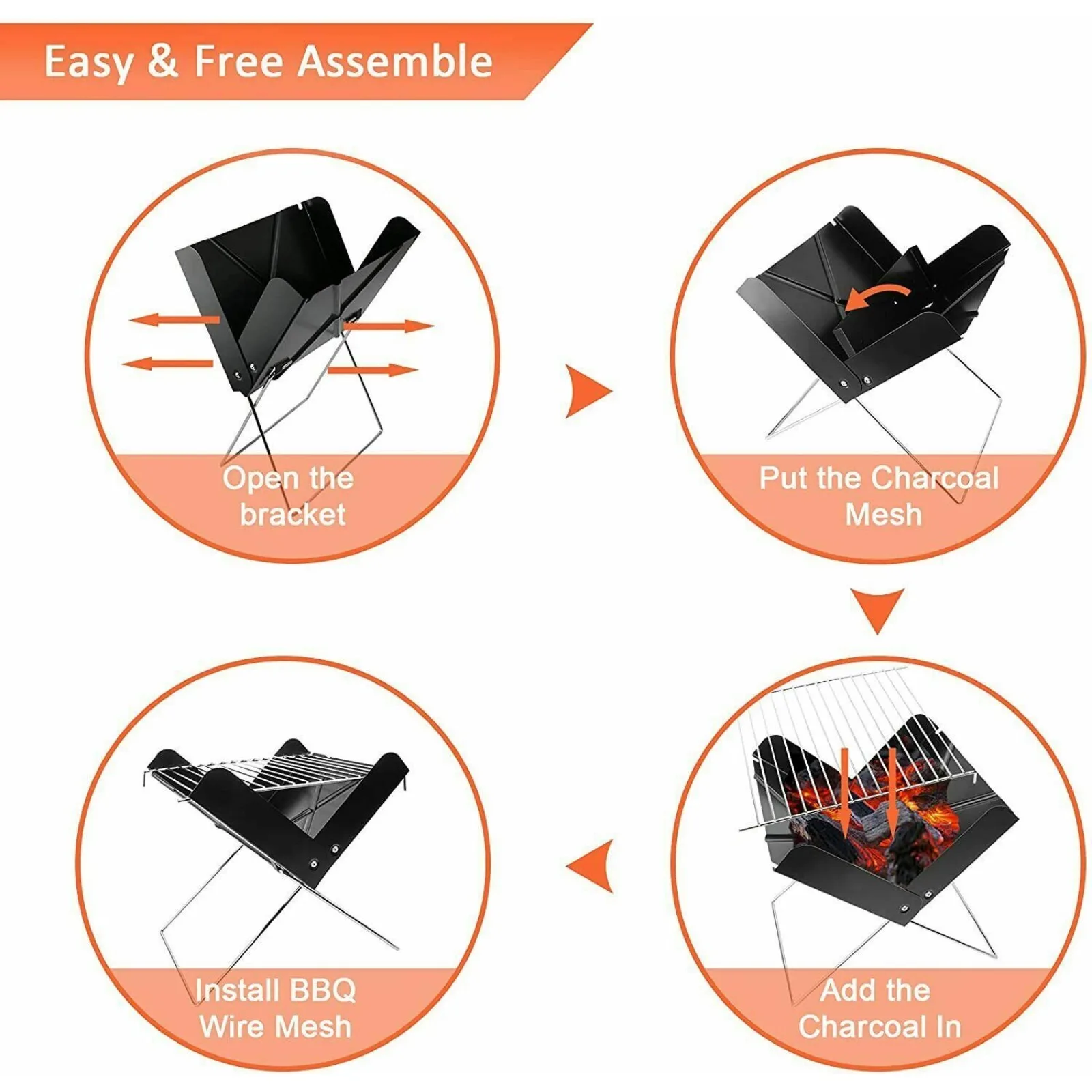 Reasonable Design: This barbecue grill is easy to install and disassemble as no tools are needed while assembling, and it is especially convenient to carry. When the foldable charcoal grill is unfolded, the portable charcoal forms a triangular feet support to maintain stability when used on the ground. The lightweight folding foot design is convenient for transportation and Store. Therefore, you can enjoy the fun of barbecue anytime, anywhere.