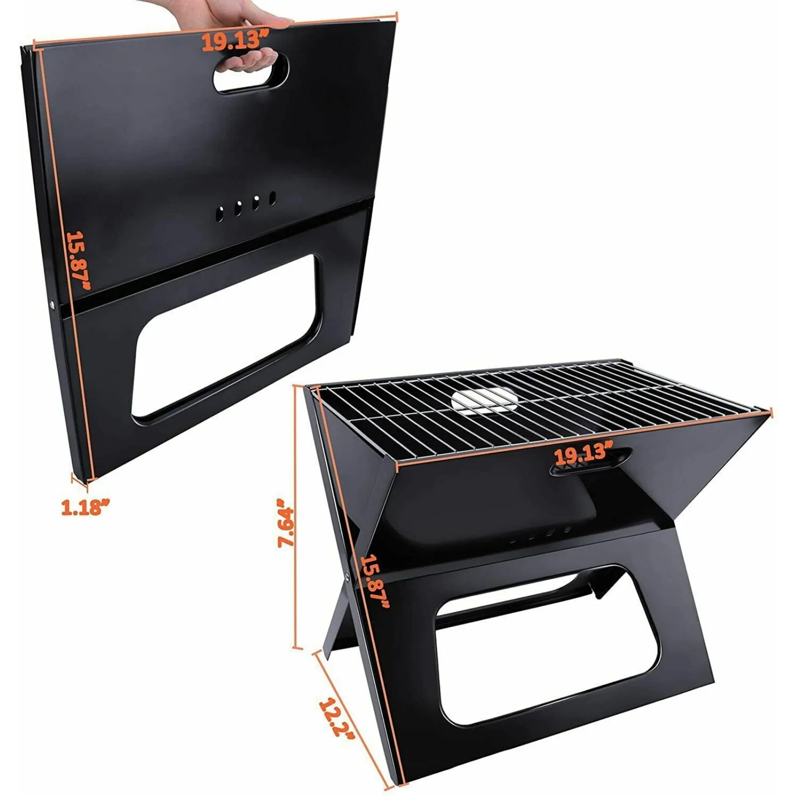 Foldable & Portable: The charcoa grill folding compact but sets up in seconds or less. This barbecue grill is not only foldable, but also small and lightweight, which is particularly easy to carry. It can be folded into ultra-thin, saving space, and it is very suitable for storing this lightweight foldable grill in very small kitchens, trunks, outdoor occasions, or even to put in your bag, as it is easy to carry to anywhere.