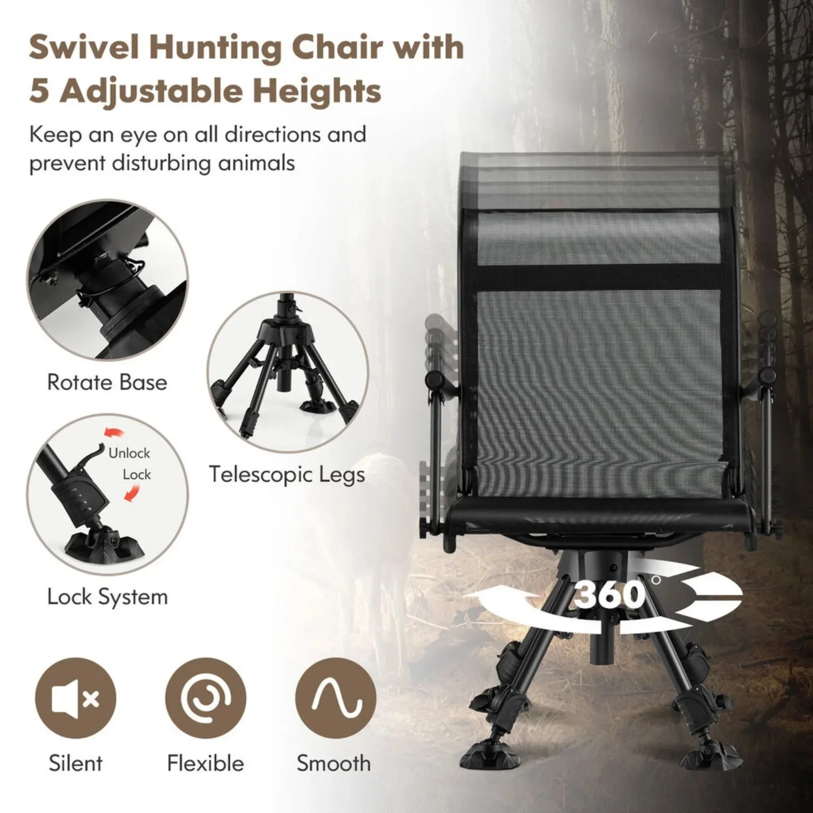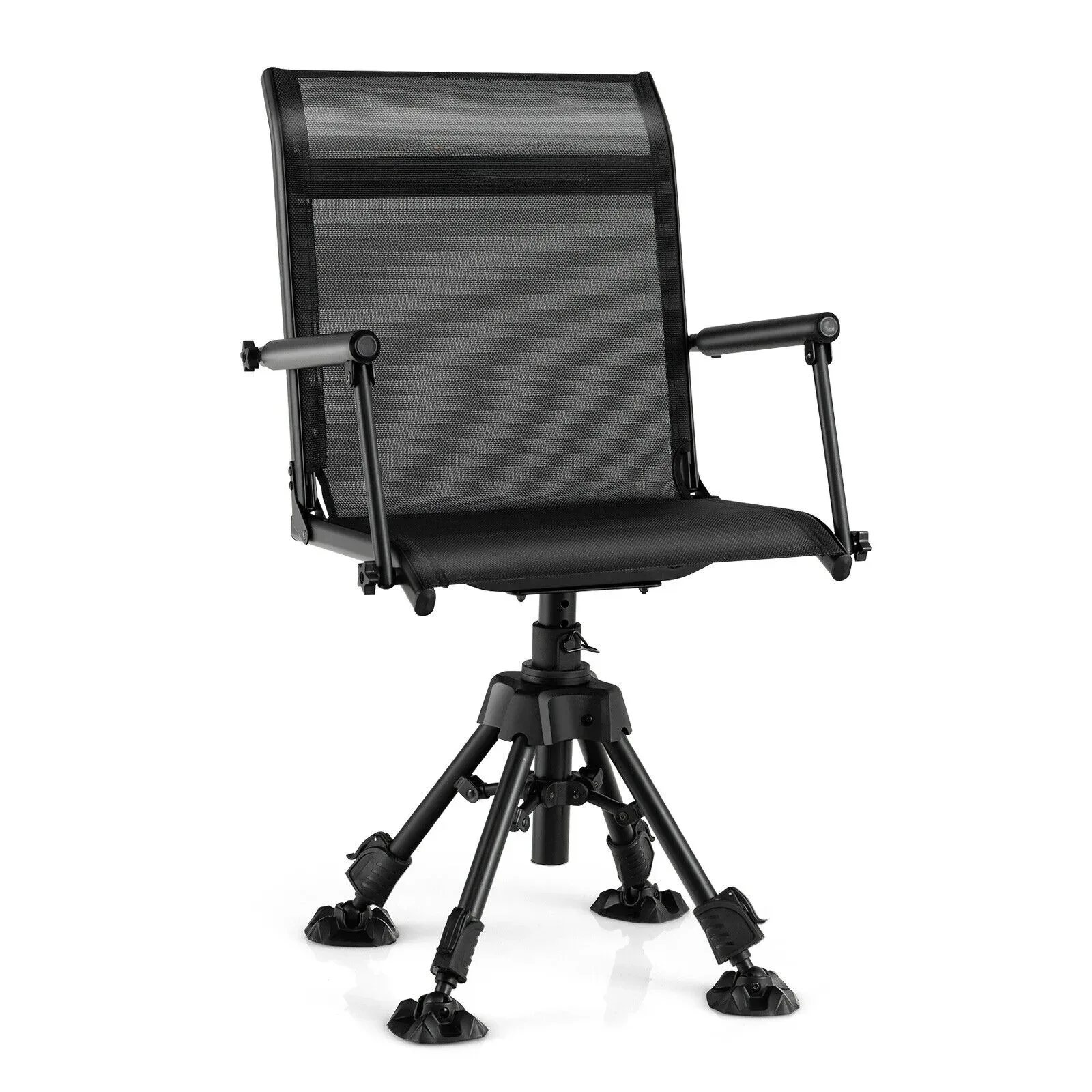The 360 degree rotating blind chair adopts a considerate silent base, which not only allows you to conveniently observe the prey in all directions, but also does not scare away your prey. When hunting outdoors, most of the ground is soft and uneven, and our swivel duck foot pads are good for maintaining stability on these surfaces. Besides, the legs of the hunting chair can be adjusted, so that you can hunt in a more satisfactory state. With a powder-coated metal frame, our hunting chair is sturdy and can hold up to 330 lbs. Besides, the humanized mesh backrest is comfortable and breathable, and the ergonomic armrest can relax your arms to bring you a pleasant hunting experience. In addition, our hunting chair can be folded into a more compact size for easy portability, making it suitable for outdoor fishing, camping and hunting.