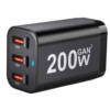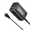 This charger does an excellent job. The USB ports are labeled according to their real power capacity. The 100W port can charge a laptop computer at 20V and 5A, the others provide superfast charging for cell phones and tablets. (200W is written on the charger, which is the sum of the individual powers of the USB ports. This is now a common but misleading practice. The maximum combined charging power on any combination of charged devices cannot exceed 100W.)