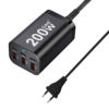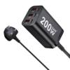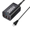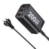 This charger does an excellent job. The USB ports are labeled according to their real power capacity. The 100W port can charge a laptop computer at 20V and 5A, the others provide superfast charging for cell phones and tablets. (200W is written on the charger, which is the sum of the individual powers of the USB ports. This is now a common but misleading practice. The maximum combined charging power on any combination of charged devices cannot exceed 100W.)