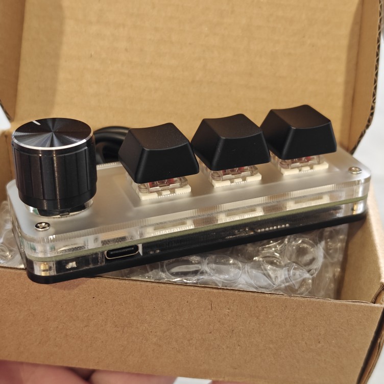This is a mini keyboard with custom functions, used in design, stock, office, game, music, media, industrial control, testing and other fields.