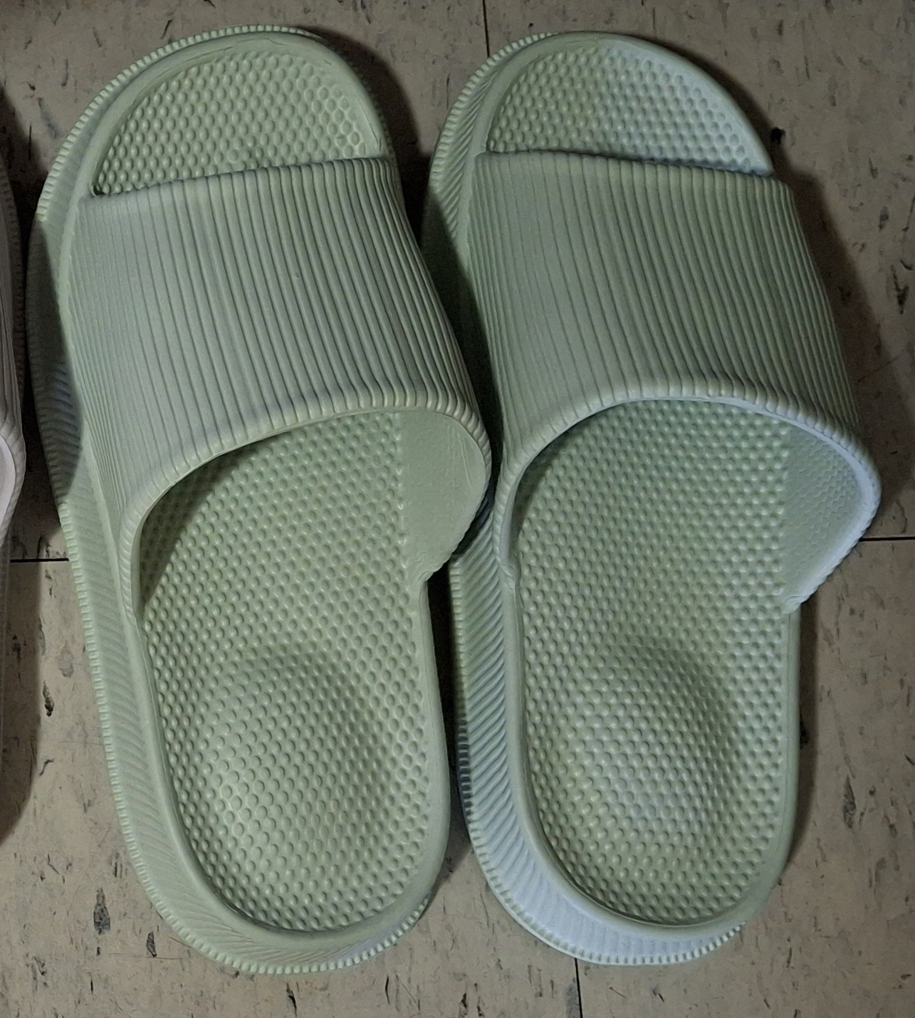For EVA slippers, avoid high temperature and sun exposure during daily use or after washing.