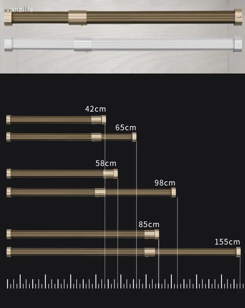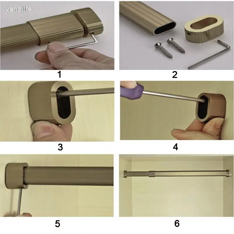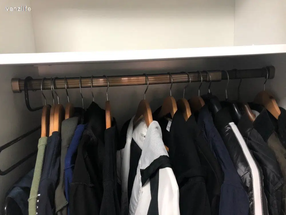 Vanzlife Adjustable Aluminum Alloy Clothes Organizing Rails Wardrobe Closet Hanger Rod Thick Clothing Rack with Rail Flange