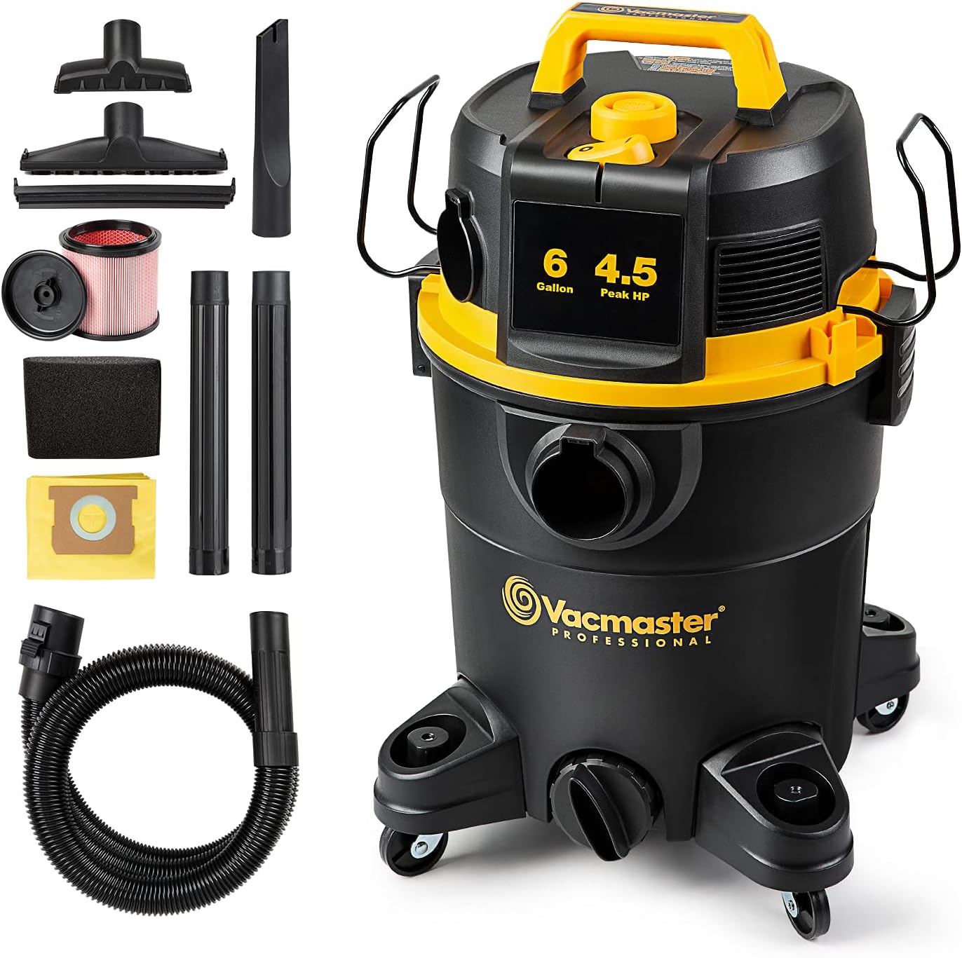 - [6 GALLON WET DRY SHOP VACUUM] This vacuum is equipped with 4.5 Peak HP and a 6-gallon* polypropylene tank. The compact design and powerful motor makes this vacuum great for jobsite or household clean up. Easily convert this vac into a blower to clean up your workspace or yard.