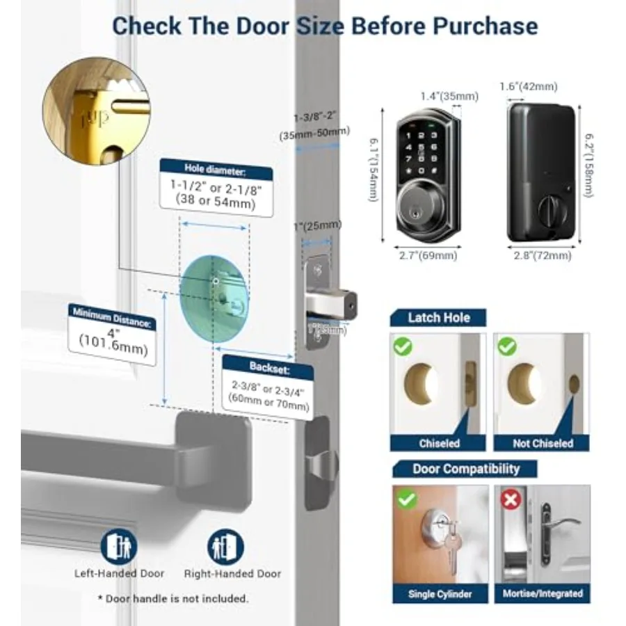 VE06 Smart Deadbolt with App Control Keyless Entry Smart Lock for Front Door Electronic Digital Door Lock with Code Easy