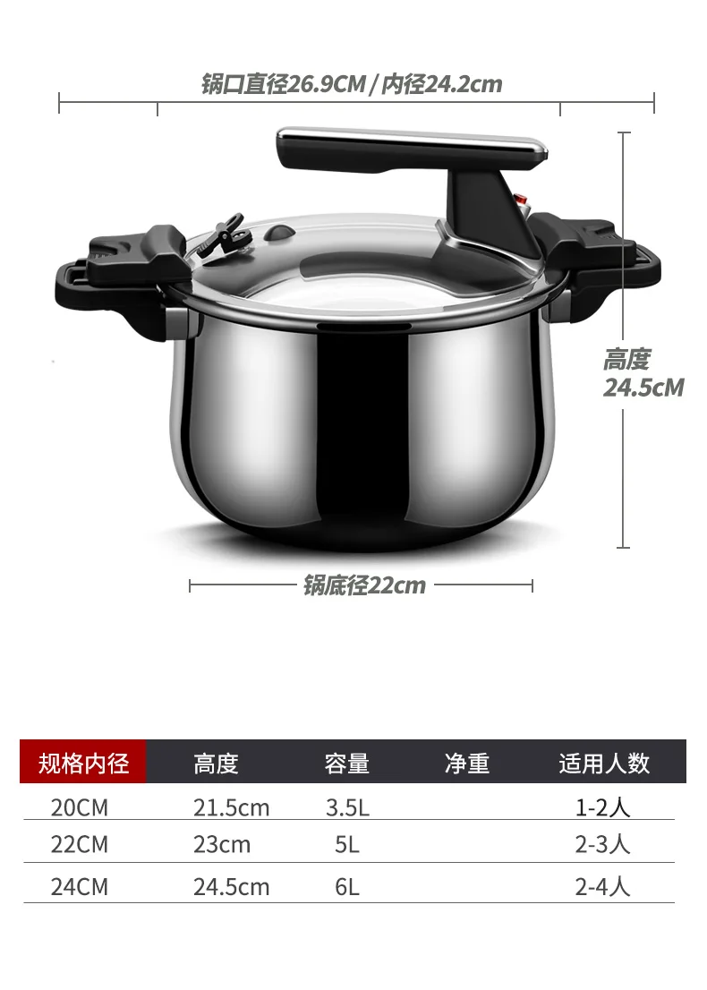 Versatile and Convenient Stainless Steel Micro Pressure Cooker with Large Capacity for Electric Stove Gas Security