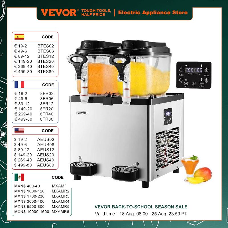 12L/3.2 Gal Slushy Machine: A classic, refreshing, zesty drink can be created every time by this commercial slushy machine. It is perfect for enjoying those long summer days and beating the heat. With the 2 x 6L/2 x 1.6 gallons tank capacity, each batch makes 50 cups of delicious slushy. It is a fun addition to bars, camping weekends, and family parties.