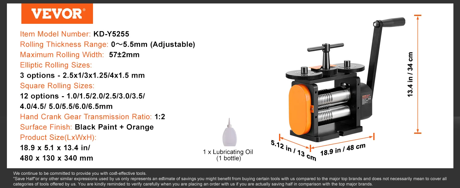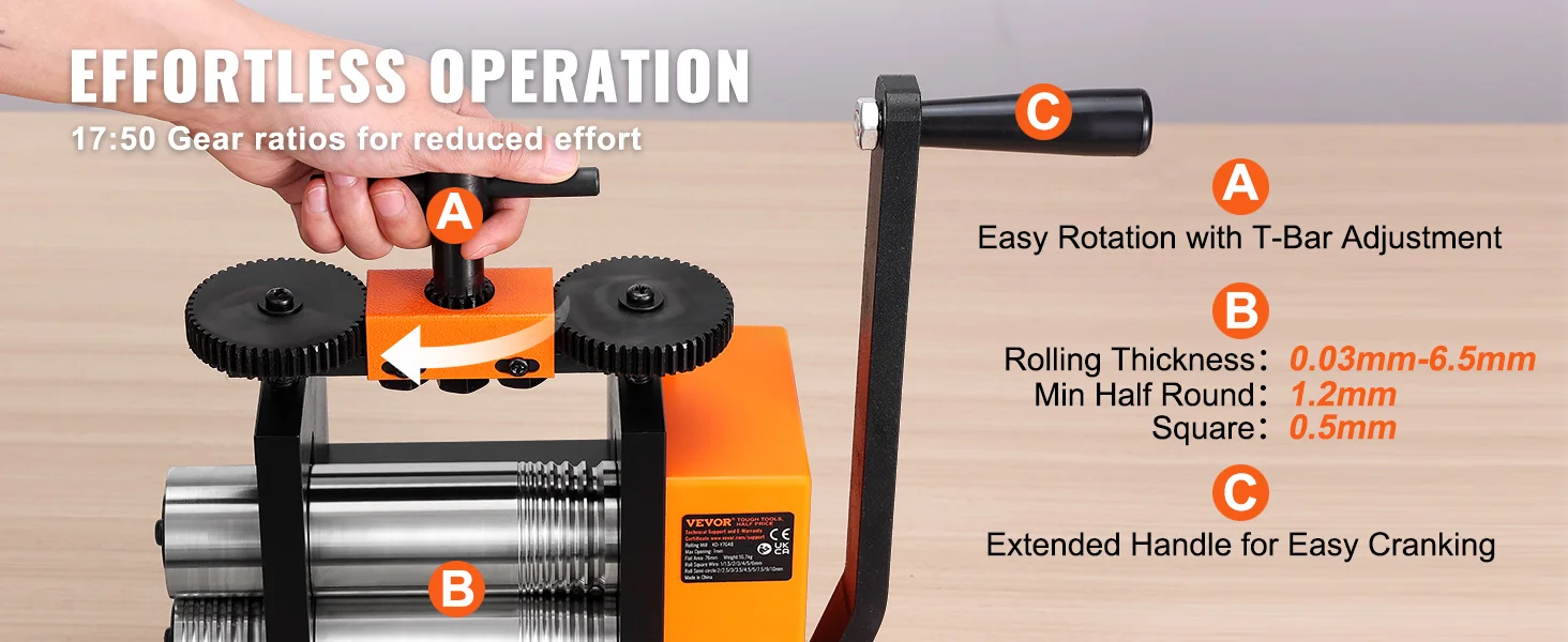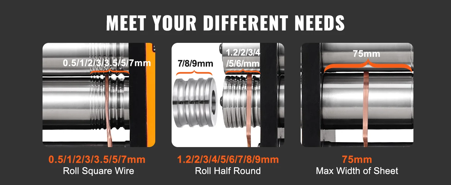 3-in-1 Multi-Function Rolling Mill: Our rolling mill can easily transform malleable metals like gold and silver into thin sheets, square wires, and half-round shapes. Various size options help you process materials into the exact thickness you desire.