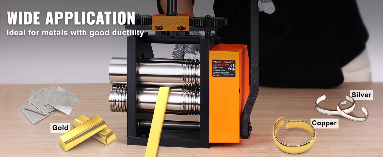 Wide Range of Applications: Our jewelry rolling mill machine is suitable for gold, K gold, pure silver, 925 silver, copper, aluminum, and other highly malleable metals. It is ideal for crafting bracelets, rings, bangles, and other jewelry, catering to the needs of both jewelry professionals and DIY enthusiasts.