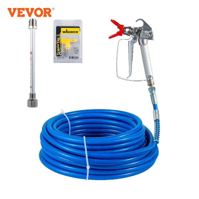 Airless Spray Accessory Kit: VEVOR’s Paint Kit makes the surface coating preparation easier and faster. It supports most mainstream airless sprayer brands, widely applied in home decoration, painting, and industrial fine paint decoration. The package includes a 50 ft airless paint hose, an airless spray device, a tip guide with a 517 tip, and an 8 in extension pole.