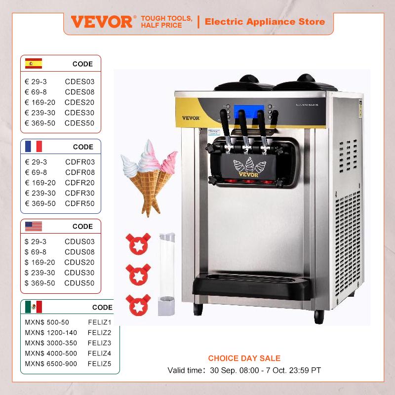 - 22-30 L/H High Yield & 3 Optional Flavors: Our commercial ice cream maker reaches 22-30 liters (5.8-7.9 gallons) per hour. Dual 6L (1.6 gal) mixing hoppers and 2L (0.5 gal) freezing cylinders (both made of SUS304) can deliver up to 150-200 servings of ice cream (100 grams per serving) in one hour to suit your business needs. Also, 2 single flavors and 1 mixed flavor to spice up your dessert menu, allowing customers to enjoy different flavors at once. Taste the difference with every serving.