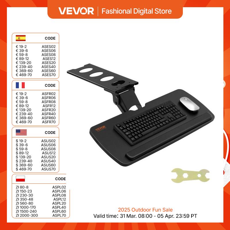 User-Friendly Wrist Rest: The VEVOR ergonomic keyboard tray, featuring a wrist rest, provides ergonomic support and enhances typing comfort. It is perfect for you if you spend significant time typing or working on a computer. Plus, it can prevent your keyboard from sliding down when the tray is tilted.