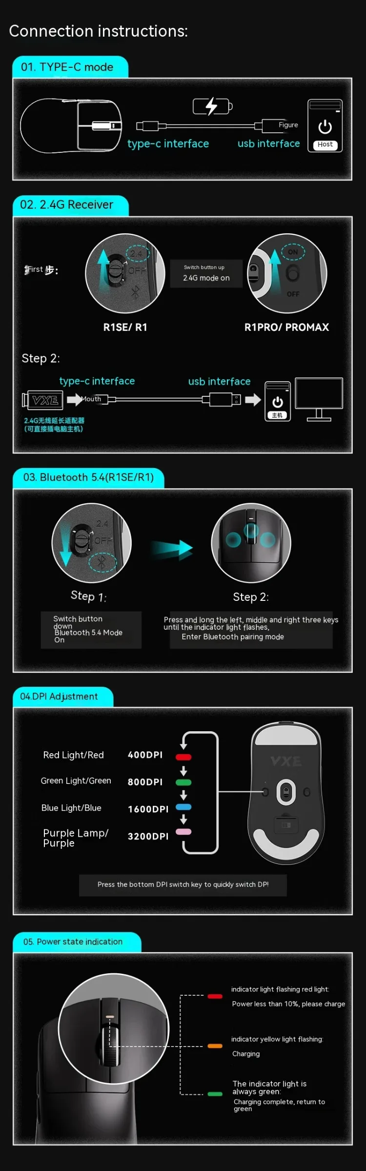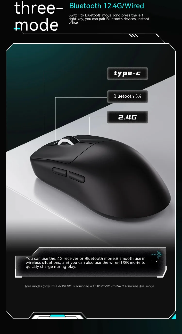 Bluetooth | 2.4G | Wired, switch to Bluetooth mode, long press the left, middle, and right buttons to pair Bluetooth devices