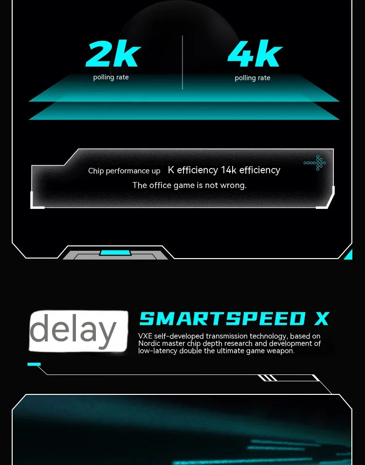 Smart speed x wireless transmission technology with low heat and fast response, can be used smoothly in strong signal interference environments, bringing a smoother gaming experience