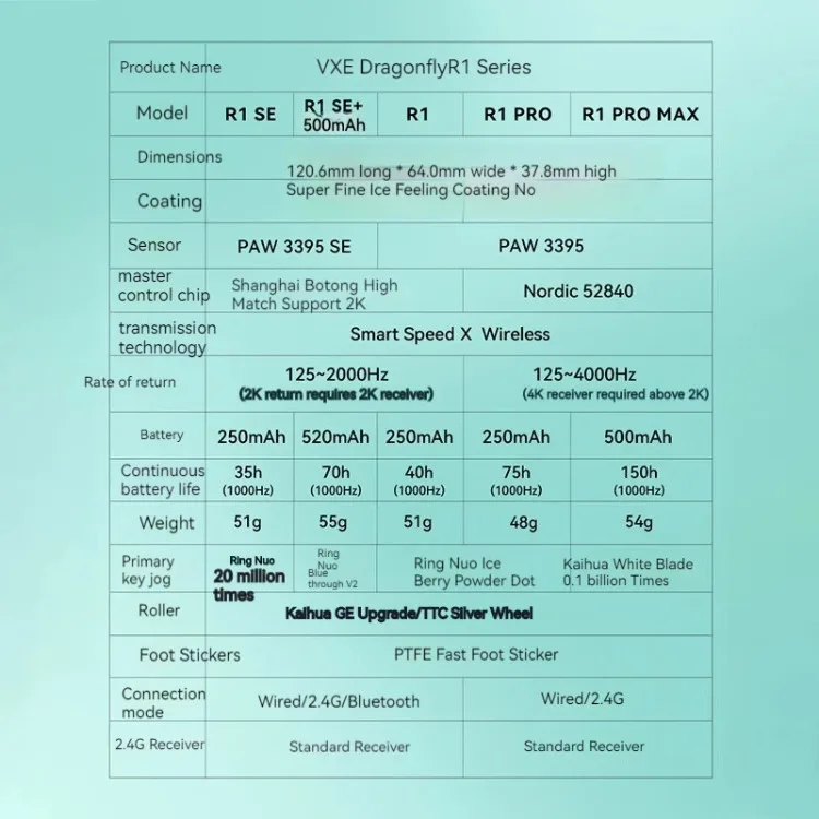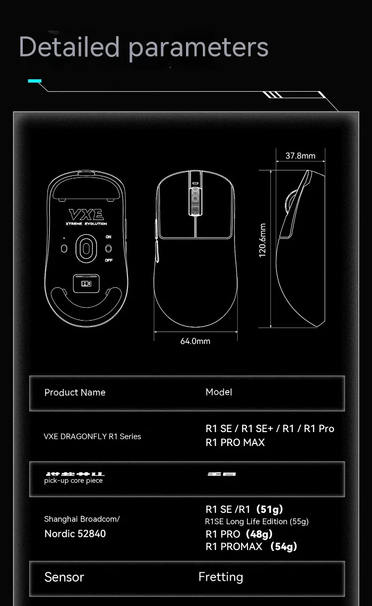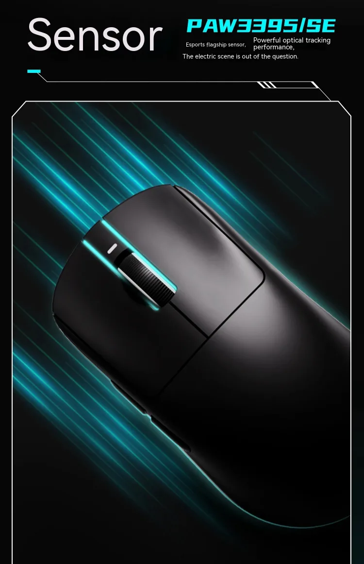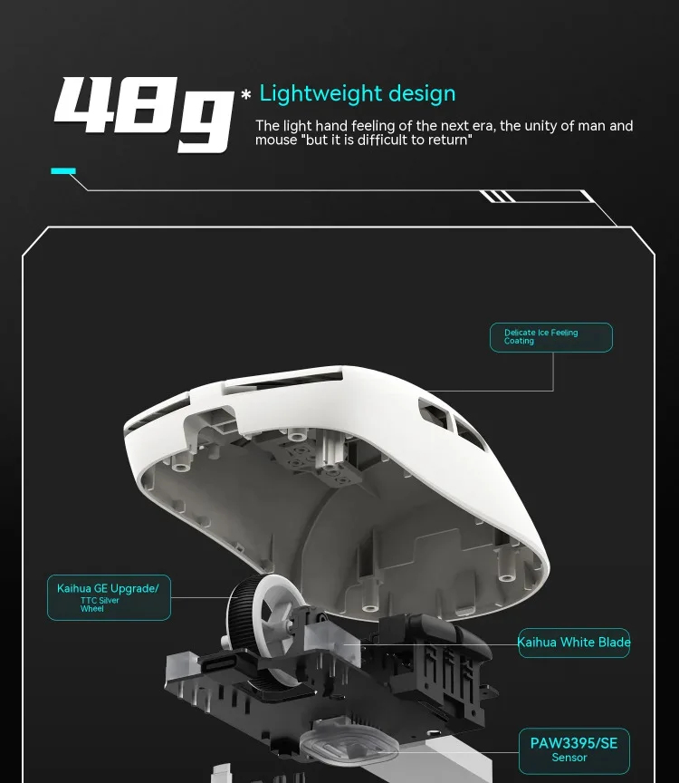This is a flagship level performance monster, with sensors PAW3395 and PAW3395 SE providing you with an ultra fast gaming experience. The Nordic controller achieves high performance and low latency. With a weight of 48g, gripping the mold and filling the palm allows you to easily cope with prolonged gaming