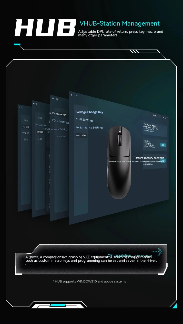 VHUB one-stop management, adjustable DPI, return rate, button macros and other parameters