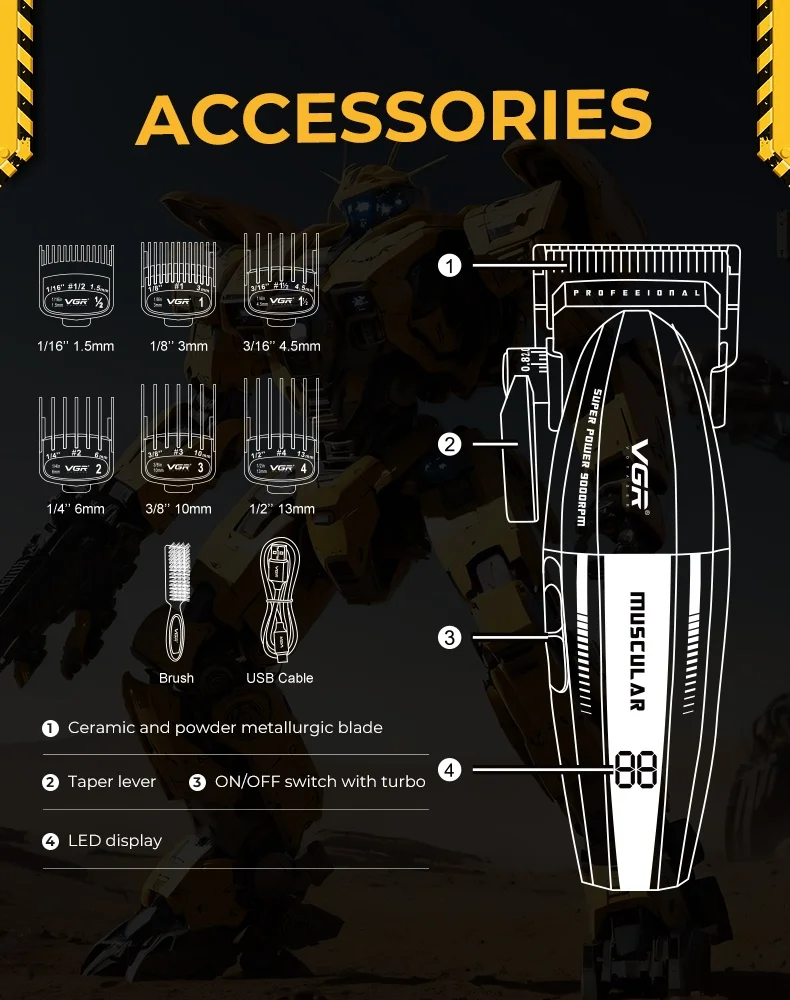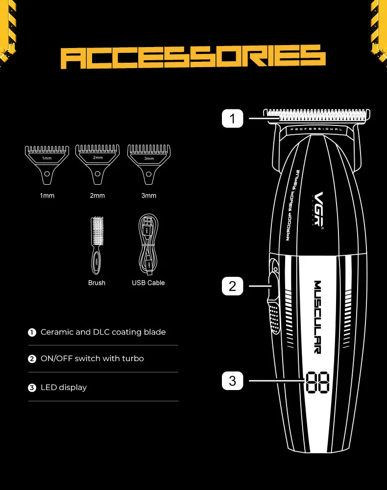 VGR Professional Metal Trimmer and Hair Clipper Set