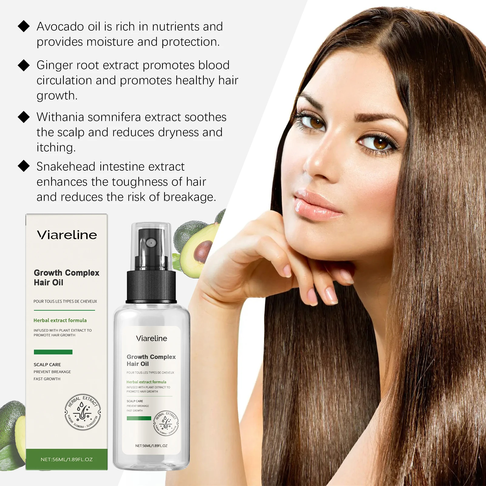 5. 4 in 1: Avocado oil, ginger root extract and other herbal ingredients comprehensively care for and clean hair and scalp
