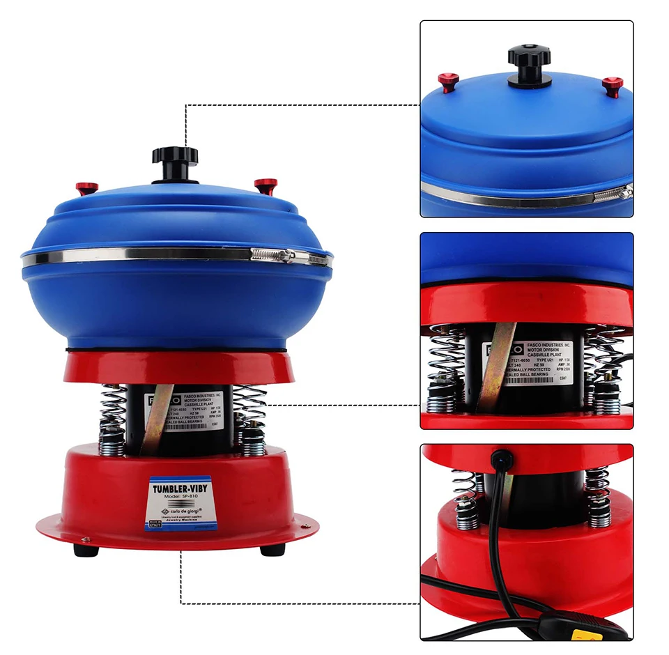 Designed with heavy duty drive and suspension system,as well as additional adjustable amplitude and tough,cross-linked polyethylence for use with all medias to achieve aptimum processing results.Good for chains,bracelets and necklaces tumbling.