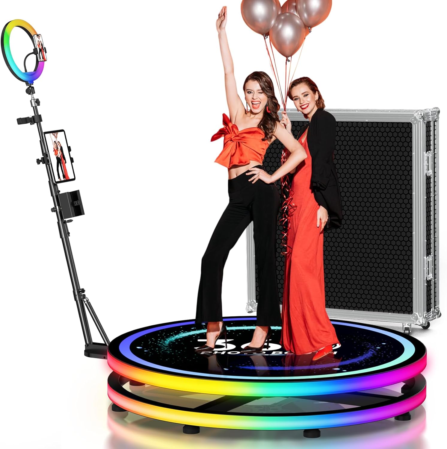 【Built in lightbox】Compared to traditional 360 photo booths, our product does not require self attaching light strips as it comes with a built-in light box. Its lighting effect is better and more atmospheric.