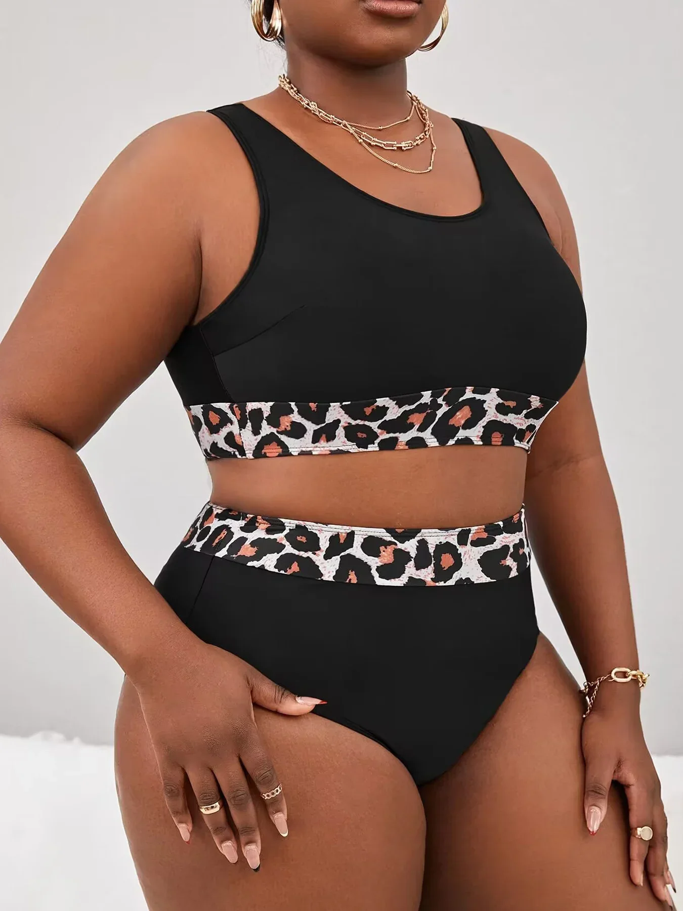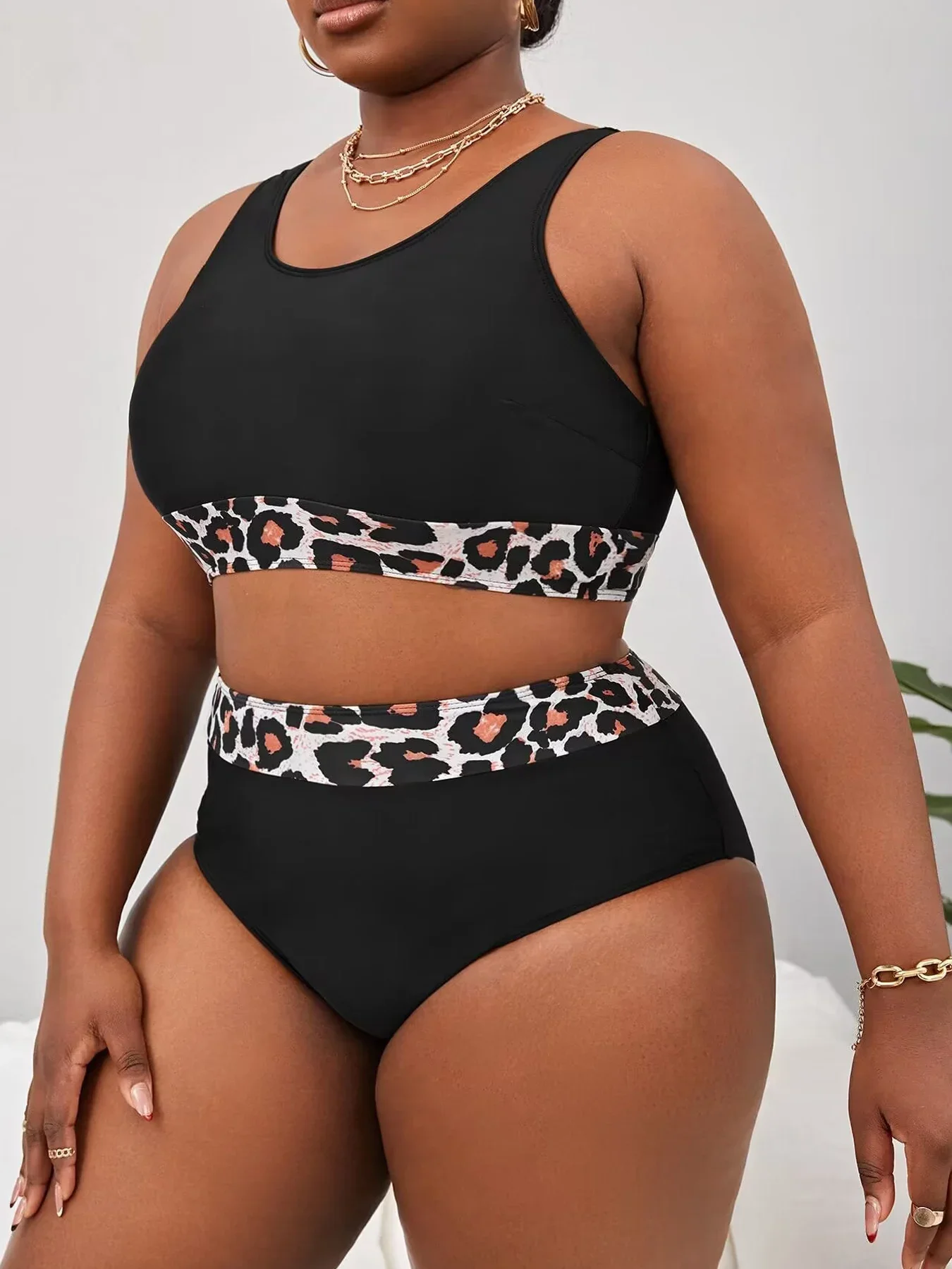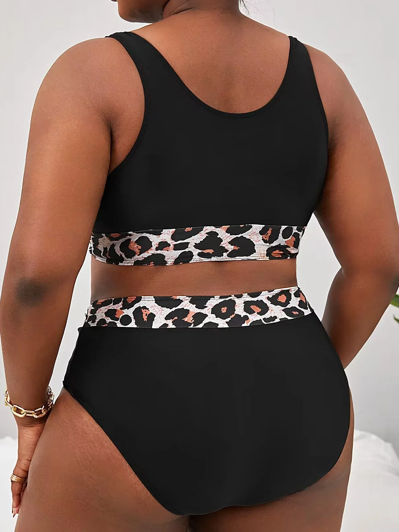 Vigojani – Women’s large leopard print bikini, two-piece set with high camisole swimsuit, backless, suitable for beach and summe