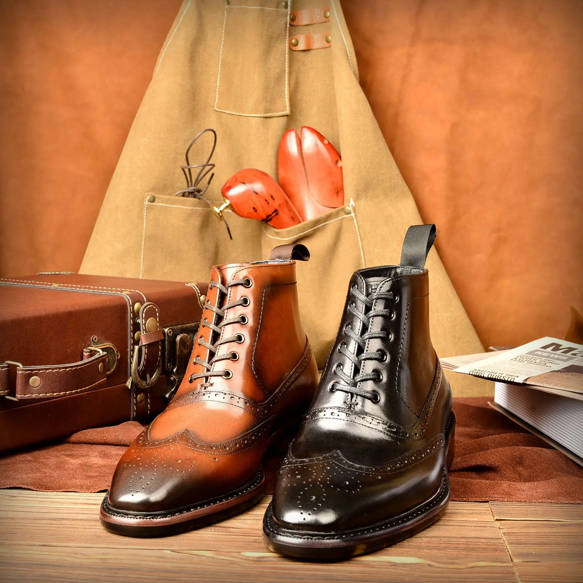 Vintage Mens Ankle Boots 42 Genuine Leather Lace Up Black Brown Dress Boots For Men Luxury Formal Shoe Italian Chelsea Boots Men