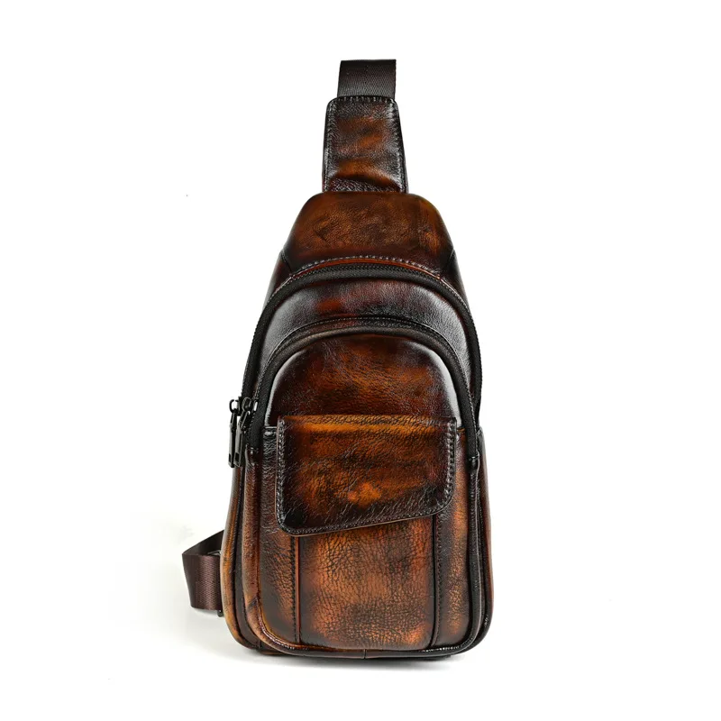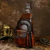 Vintage Men’s Chest Bag in Top Layer Cowhide Leather Crossbody Outdoor Backpack