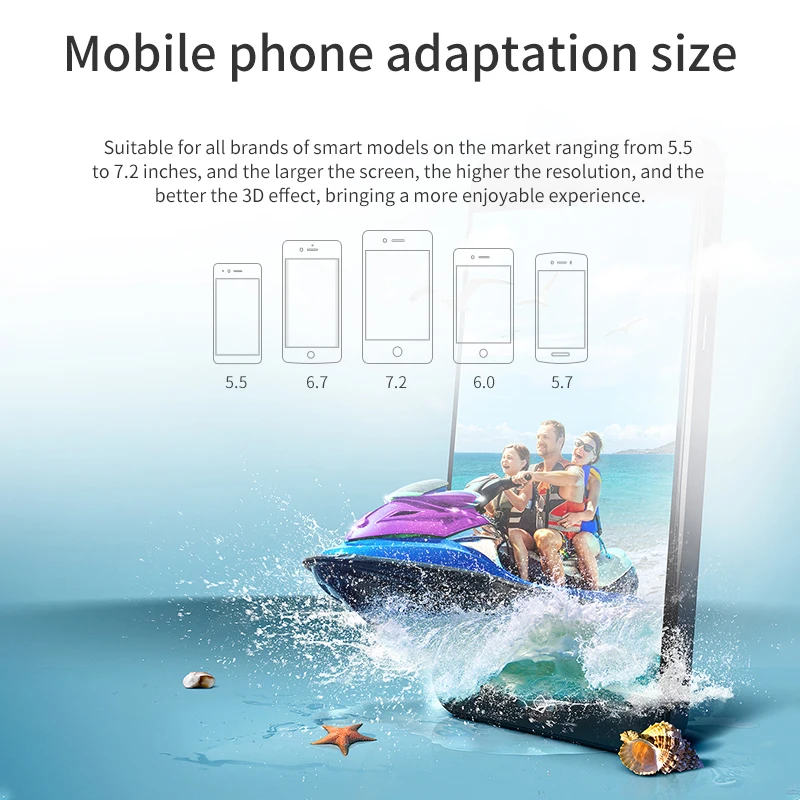 Works with most 4.7–6.53″ phones; larger/higher-resolution screens enhance 3D effect. -