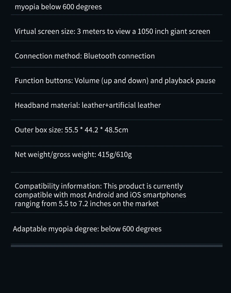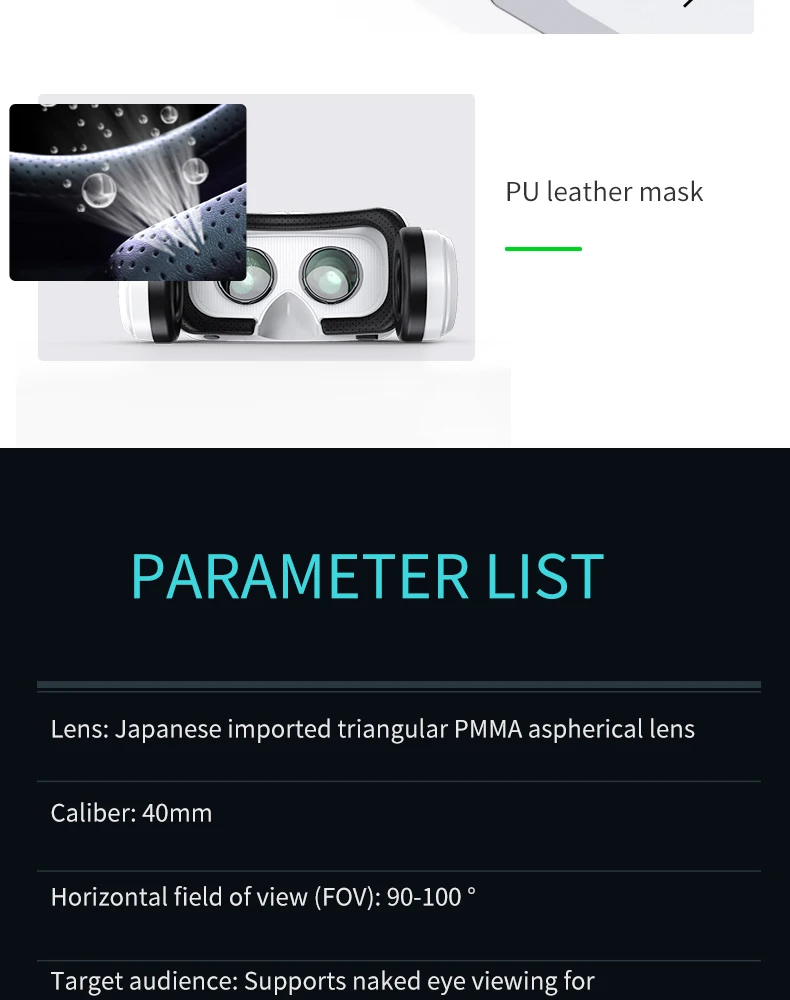 Features 100° field of view, anti-distortion algorithm, and bionic optical lenses for theater-like 3D movies, VR games, and panoramic experiences. -