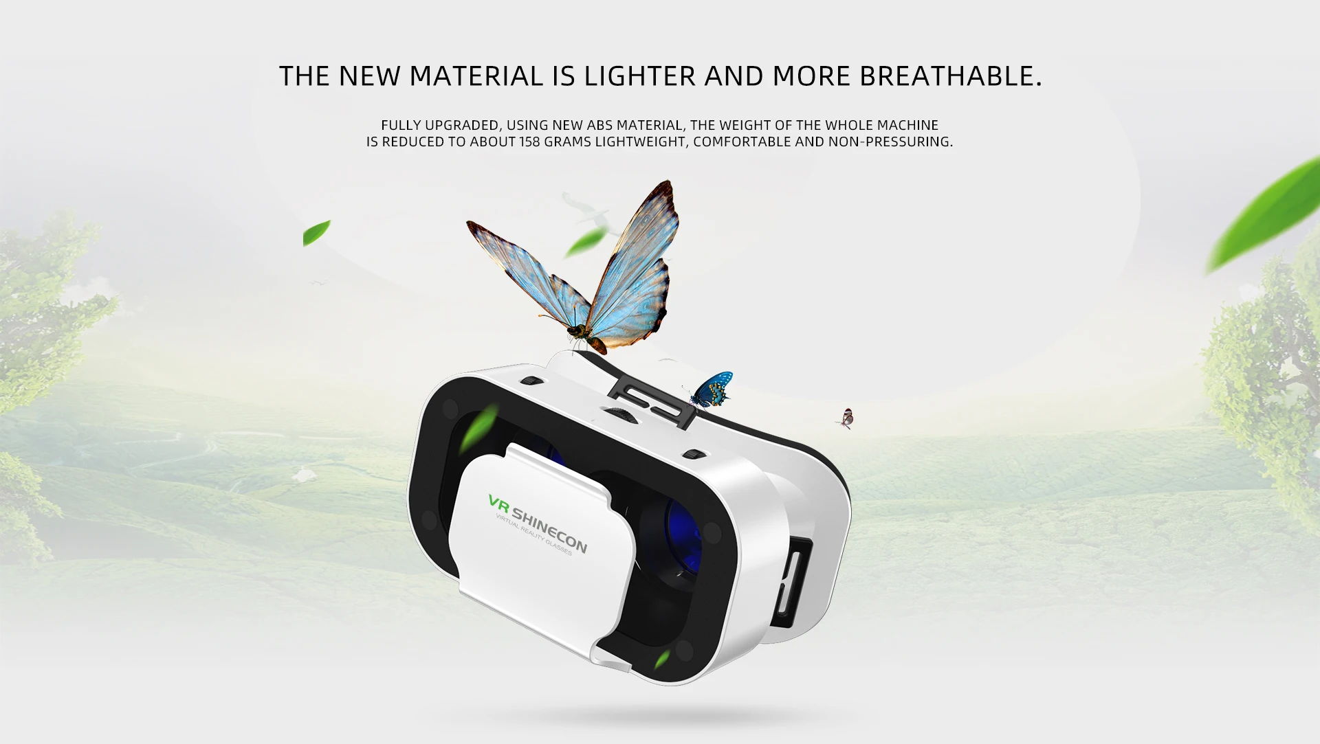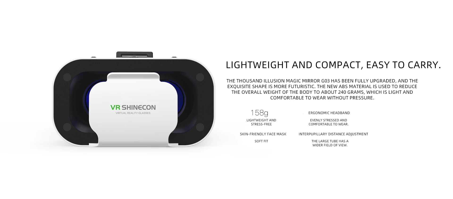 Constructed with new ABS material (only ~158g), plus ergonomic headband, skin-friendly face mask, and interpupillary distance adjustment—no pressure even during long use. -