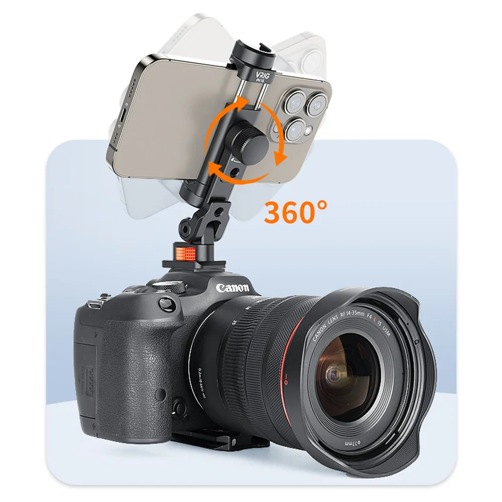 Take your vlogging and video live streaming to the next level with our metal phone tripod mount! Featuring 4 cold shoes and an Arca port, it provides versatility for your accessories. Easily rotate your phone 360 degrees and secure it with the 1/4” screw. Compatible with iPhone and Samsung devices, it’s the perfect tool for capturing every adventure.