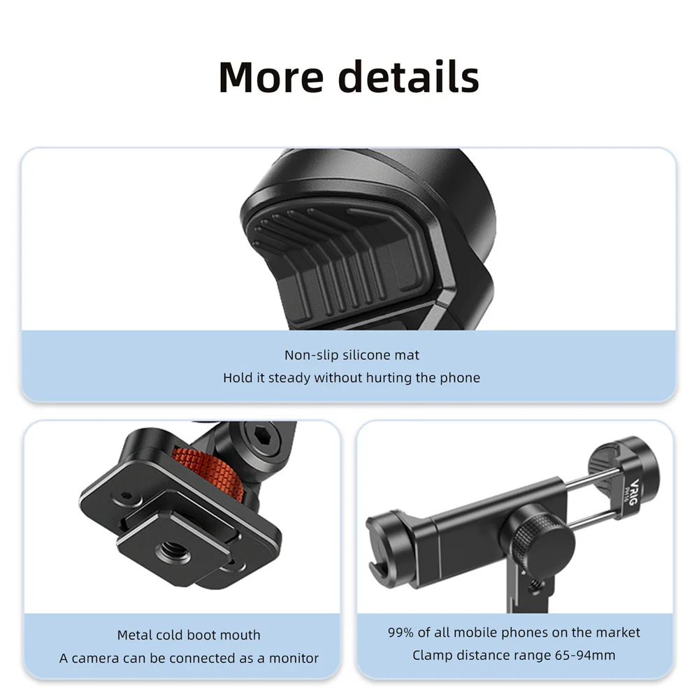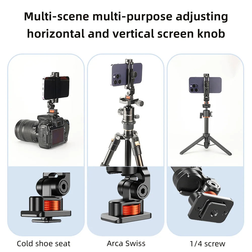 Our metal phone tripod mount is constructed using high-quality aluminum alloy, making it not only lightweight for easy portability but also incredibly durable to withstand everyday use and travel -