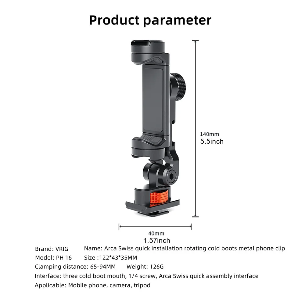 Name: Arca Swiss quick installation rotating cold boots metal phone clip