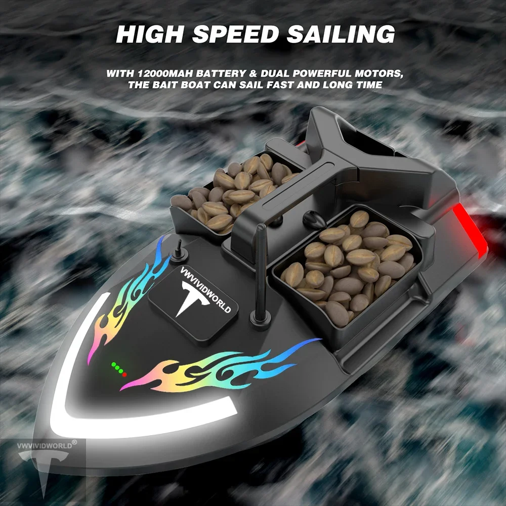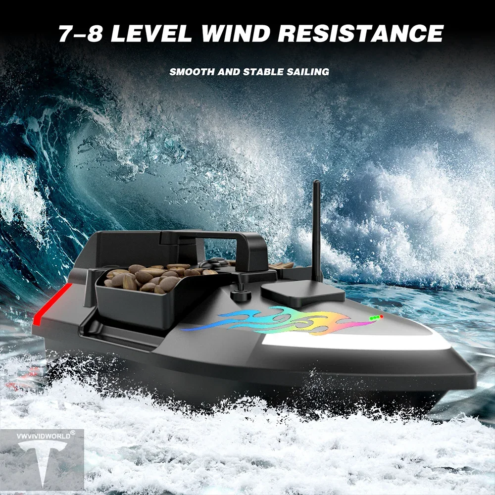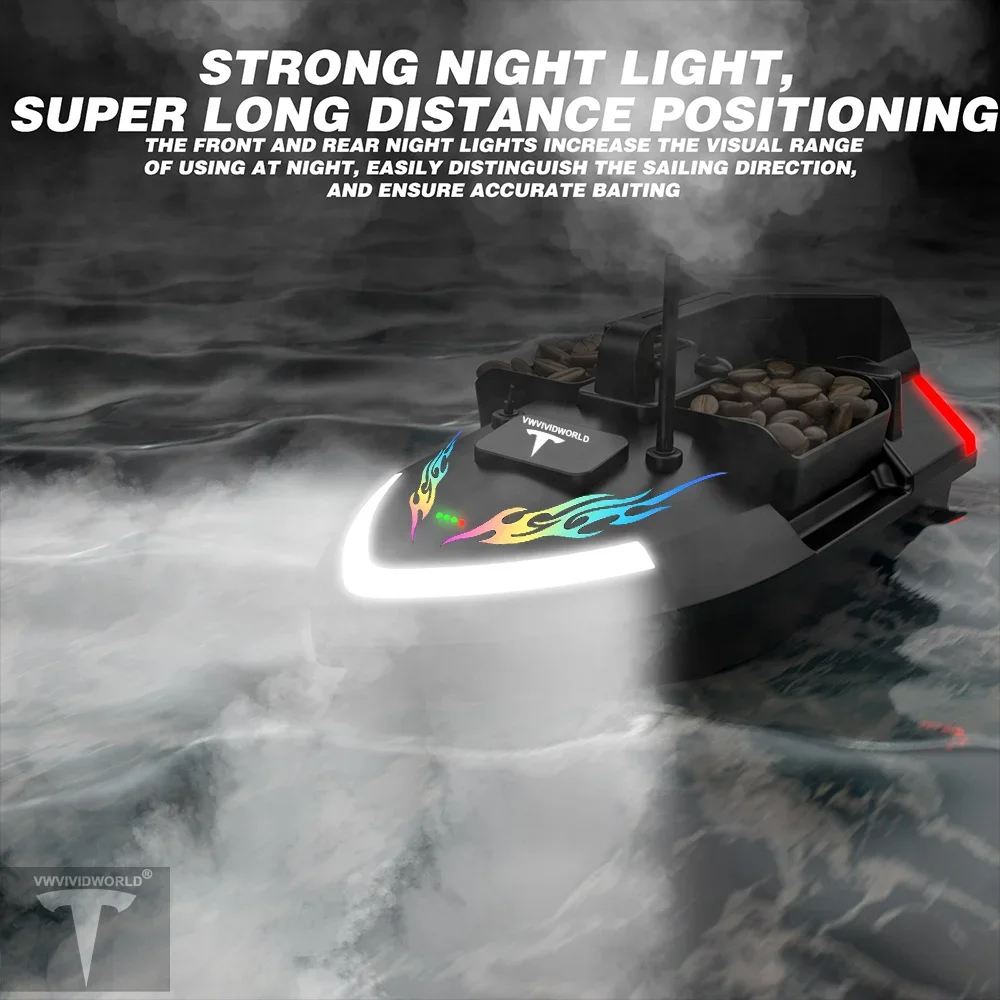It adopts the design of three independently controlled bait tanks, the load capability is about 2 kg, can control fixed-point baiting, add anti-decoupling design in the rear silo, can send the hook and fishing line, prevent the fishing line from entanglement